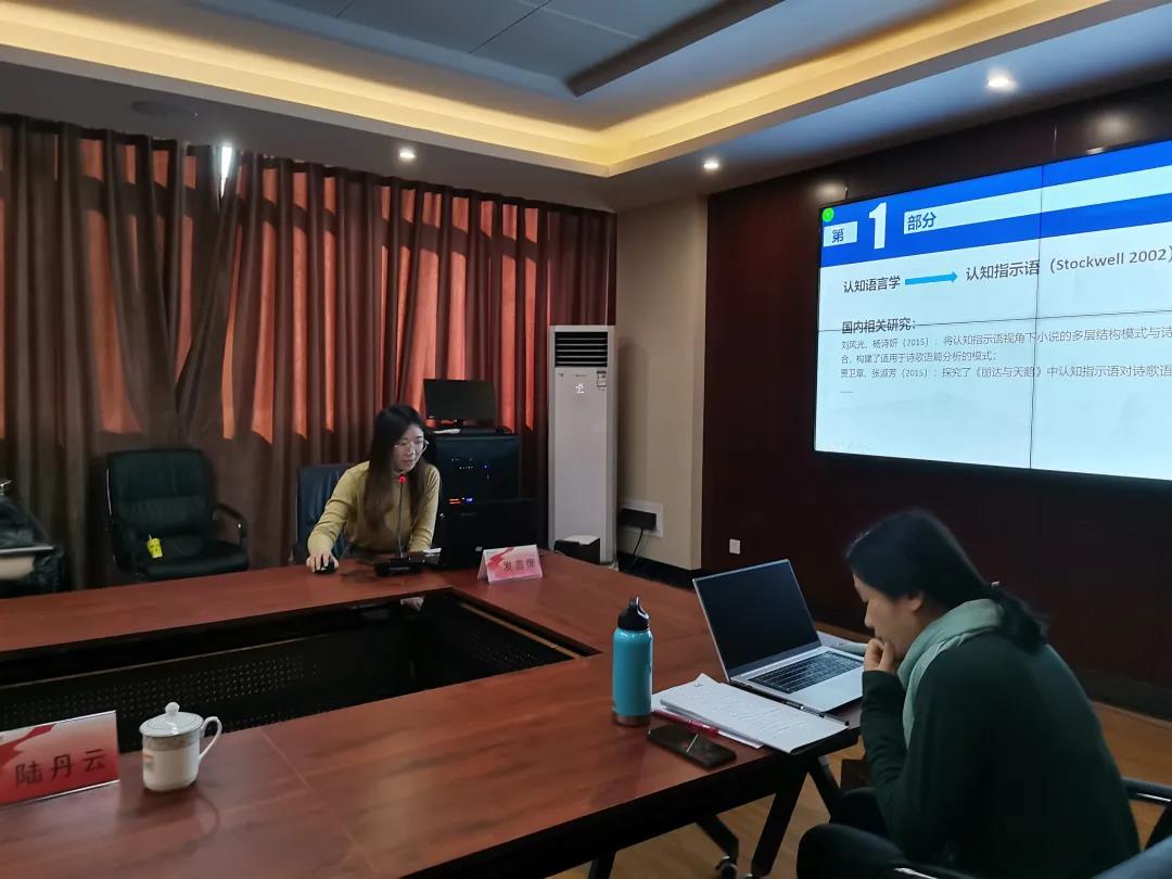 在分论坛现场,蒋瑞函、周雪、王欣、赵滦文分别就外交话语中的民俗语言翻译、CLI课堂的教师多模态反馈、民族身份中的认知指示表征、玛丽安•摩尔诗歌中的身份解构等话题进行发言。周领顺教授、陆丹云教授等多所高校的专家学者对论文的创新性及可行性给予一致认可,同时从论文撰写与发表、定量定性分析模式、研究设计与方法等方面提出了宝贵且中肯的建议。