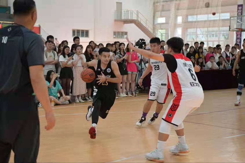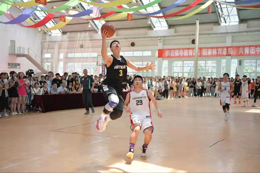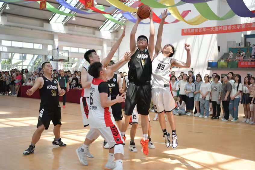 7月2日中午,英语学院篮球队与软件学院19级篮球队于风雨操场展开总决赛最后一场的角逐,最终英语学院取得了胜利,以总比分3:2的成绩夺得了本届男子篮球联赛总冠军。大连外国语大学副校长常俊跃莅临比赛现场,英语学院院长吕春媚、党委副书记梁若冰、副院长曲涛、刘晓晖、王成东、分团委书记曲镜达和各年级辅导员纷纷到场与我院学生一同为英院篮球队加油助威。