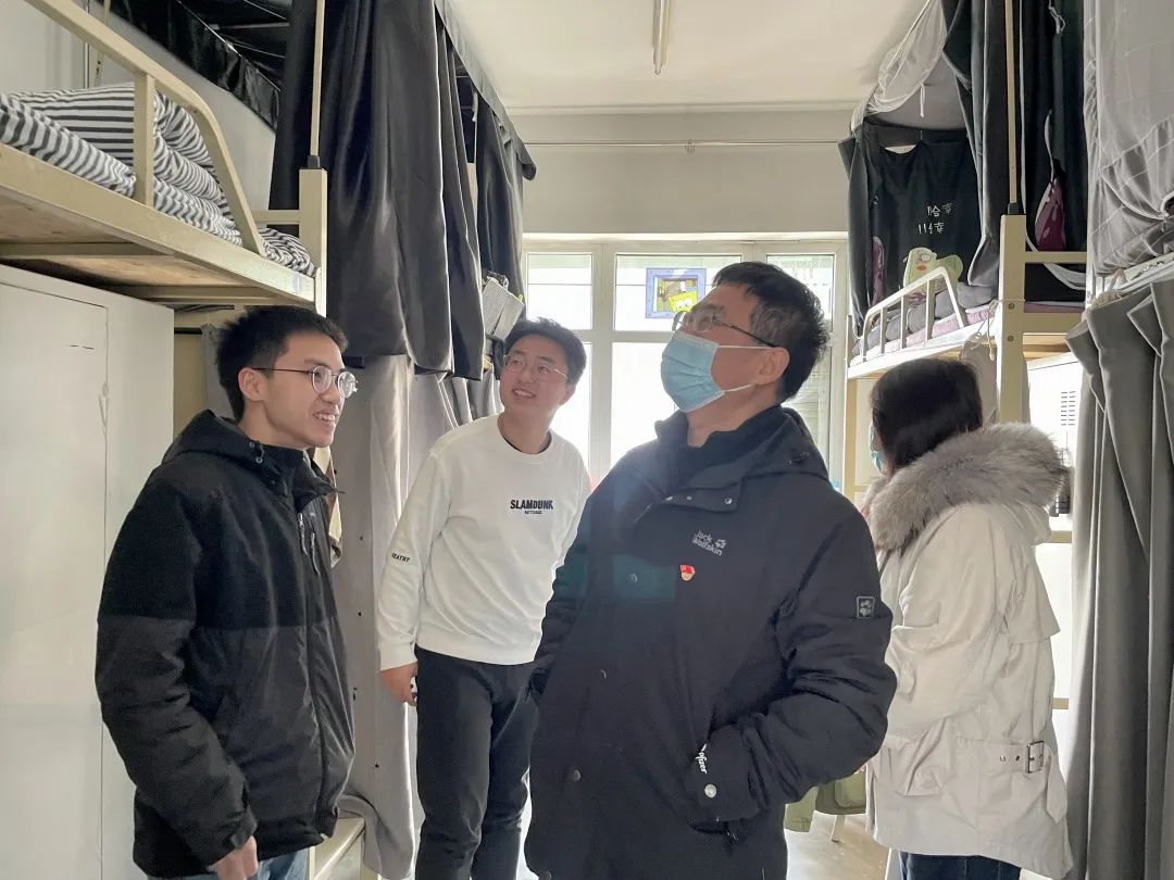 以爱关怀,可抵寒风;以暖为伴,可御严冬。为关心学生身心健康,了解学生疫情阶段生活状况以及实际困难,3月19日上午,英语学院副院长曲涛、2018级辅导员李延奇、研究生辅导员黄新智、徐璟锋四位老师对我院学生寝室进行走访。