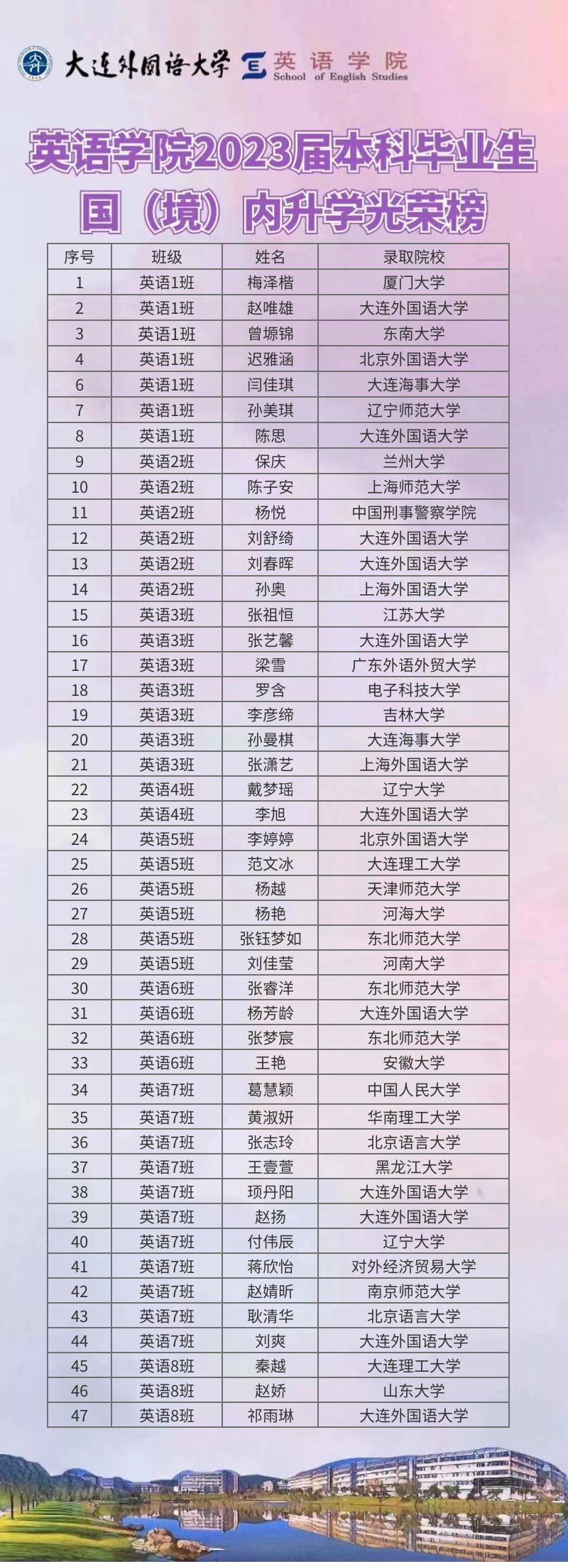 喜报|英语学院2023届本科毕业生升学光荣榜发布!
