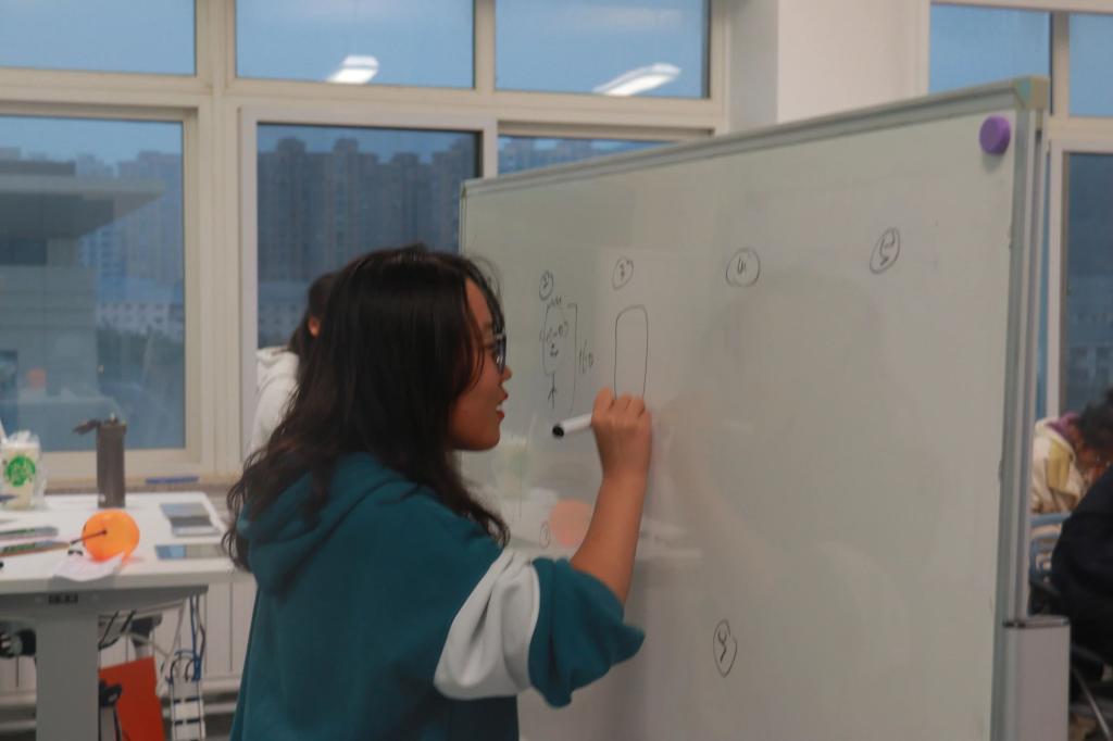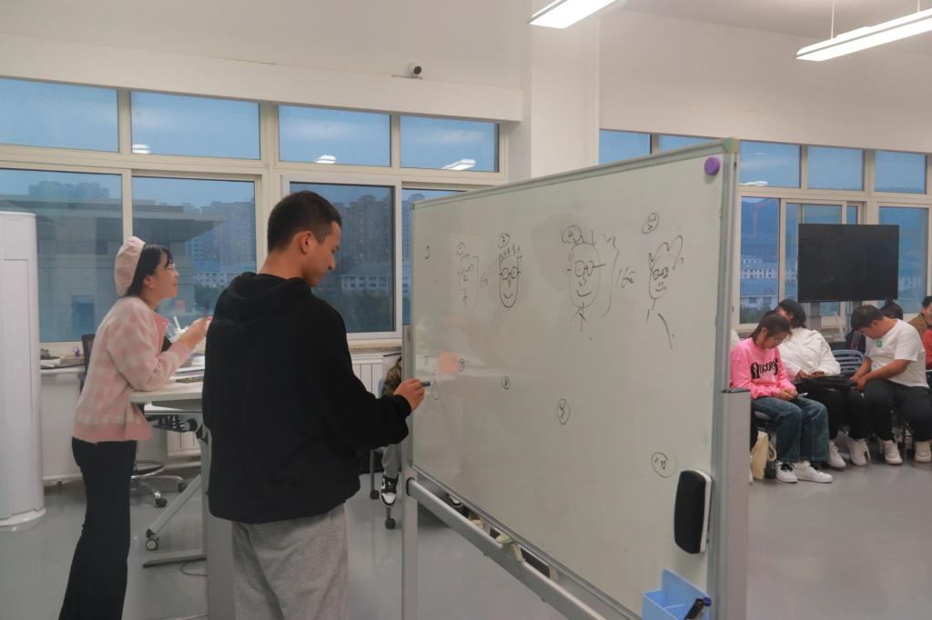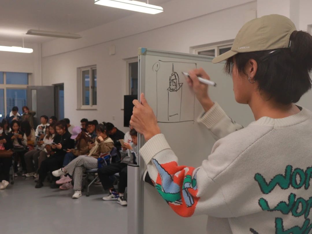 接力版你画我猜更是让现场欢笑不断,每组派出⼗⼈轮流到⽩板处画画,只有第⼀⼈知道名称,其余同学均靠猜来作画。同学们或生动或抽象的图画使得现场气氛一度被点燃,掌声连连。