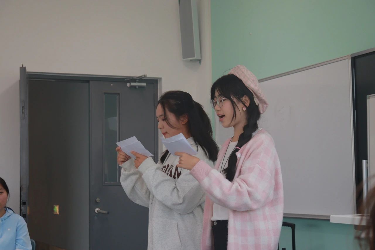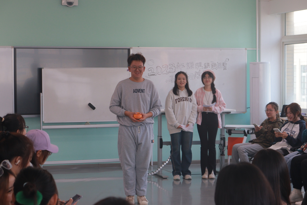 开场前,同学们将写给同级小伙伴的卡片放入纸箱中。活动开始后,主持人带领大家进行击鼓传花。随着拍手声的逐渐急促,小南瓜灯在大家手中起起落落,现场欢呼声、呐喊声连成一片。最终被传到的人上台做自我介绍并推荐家乡景点与美食。三轮过后,现场气氛活跃,语笑欢喧。