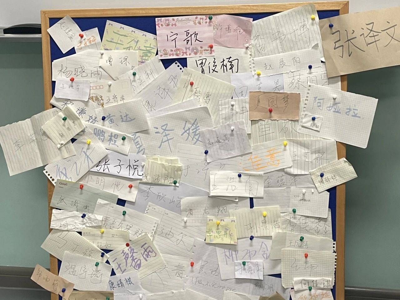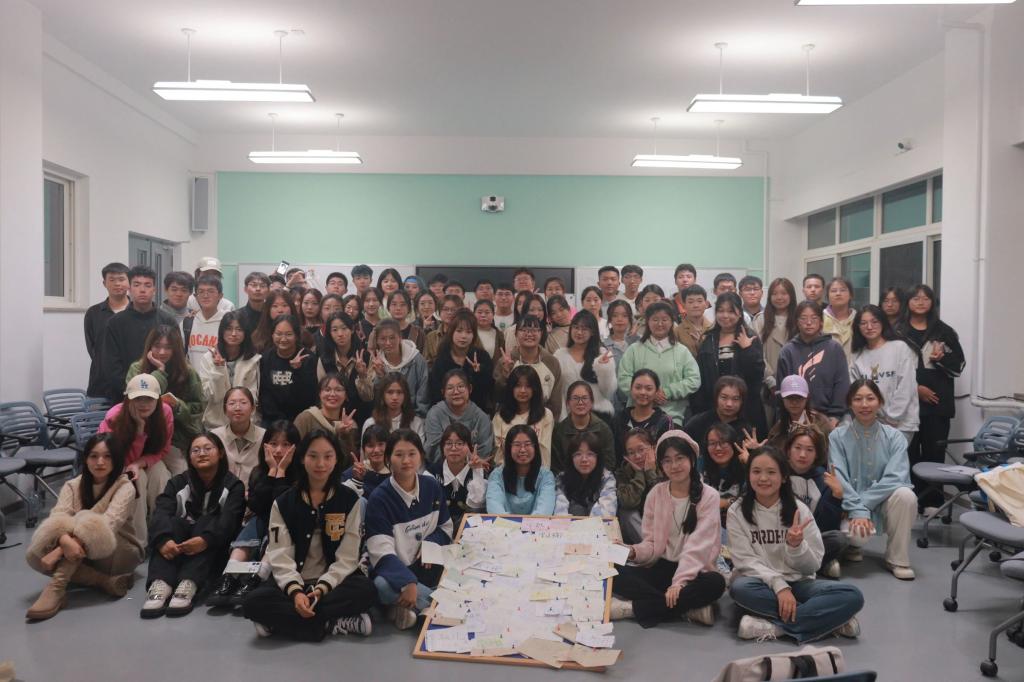 最后,同学们将自己的姓名卡片钉在毛毡板上并合影留念,工作人员分发小礼物送给所有的参与成员。