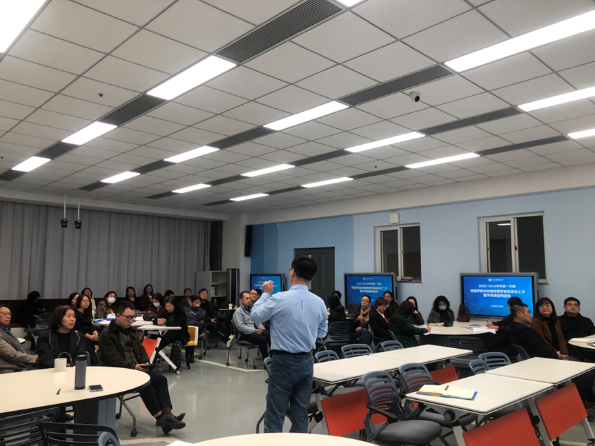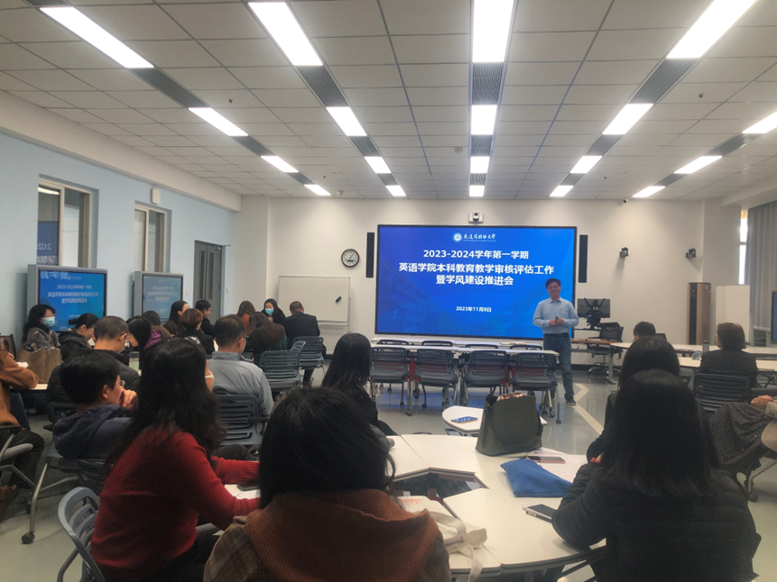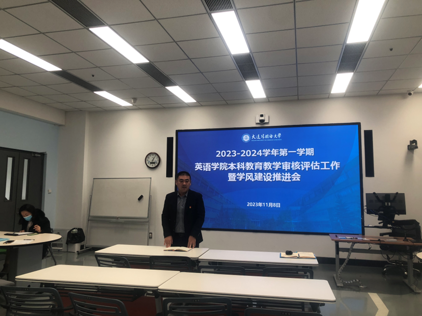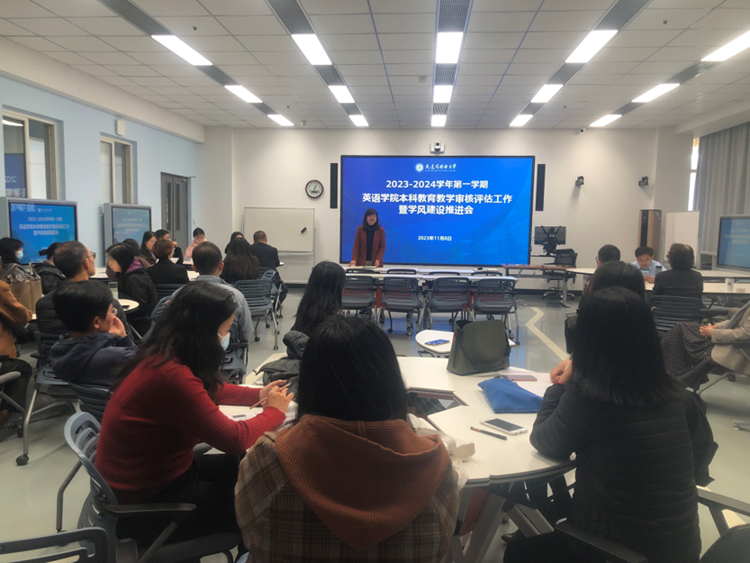 11月8日,英语学院在励业楼B区402召开2023-2024学年第一学期本科教育教学审核评估工作暨学风建设推进会。学院全体专任教师、辅导员和行政人员参会,会议由院长吕春媚主持。