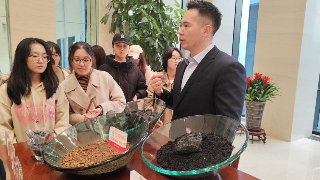 参观完交易大厅,同学们跟随工作人员来到展台区域。讲解员细致介绍了展台上琳琅满目的期货品种,包括铁矿石、焦炭、生猪期货、黄大米、豆油、梗米和玉米淀粉等,同时向同学们讲授了市场对于期货品种的需求、金融市场运作、风险管理等方面的知识。大连商品交易所展出的期货交易品种不仅是学习经济金融知识的窗口,也为同学们提供了深入理解市场运作和体验实体经济的机会。