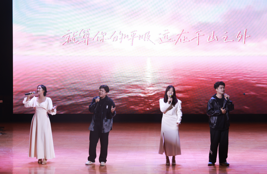 第三部分“逐梦山海 奋楫远航”的节目主要有舞蹈《Spicy》《雨涧春行图》,歌曲《New Boy》《One day》。同学们燃烧的激情,全然绽放在青春文艺汇演的舞台上。最后,所有演职人员共同合唱结场曲《相亲相爱》,英语学院第一届文艺嘉年华至此圆满结束。