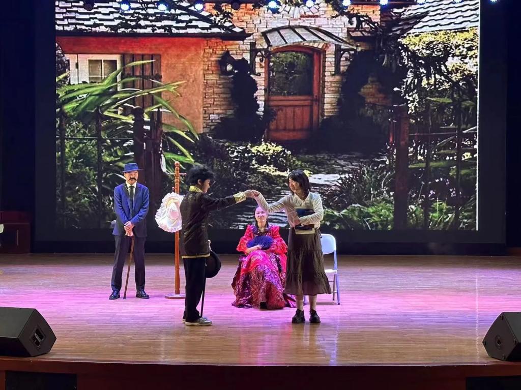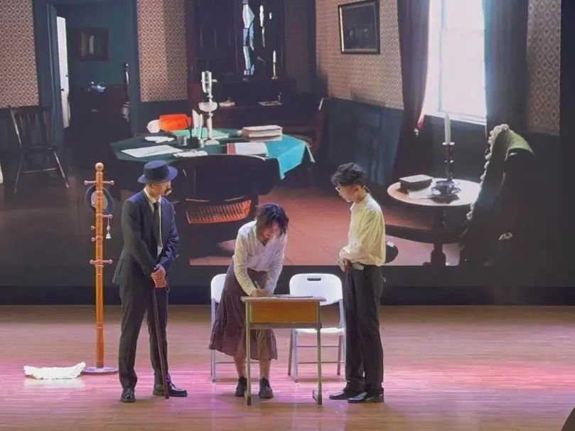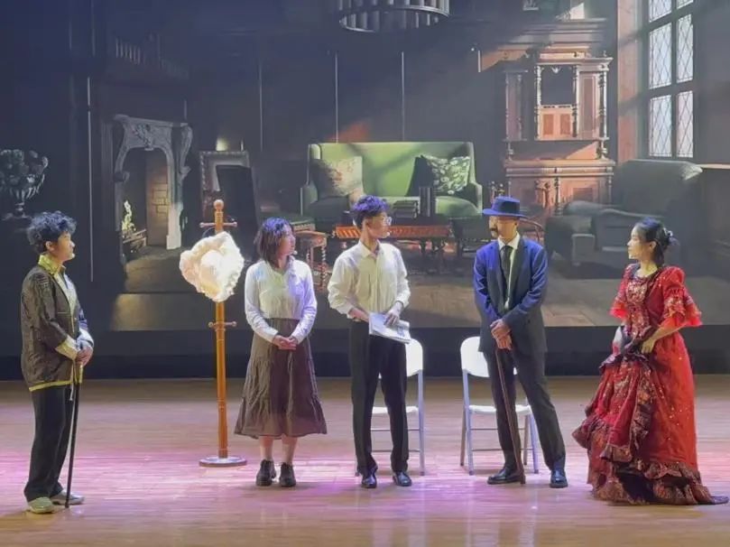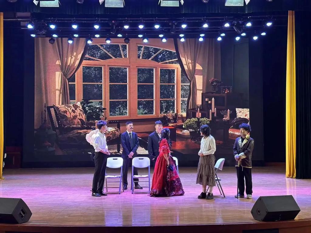 在戏剧俱乐部指导教师罗俏鹃与喻冬的悉心指导下,该剧目演职人员王露蓉、张月、董蕾、王浩、麦天成、伊家武、向晨高度配合,精心排练。导演们根据彩排和反馈,反复打磨确保演出质量和效果。演员们投入了大量时间和精力理解剧本,背诵台词,确保熟练表达情感,在舞台上自然流畅地传达人物内心的变化和冲突。