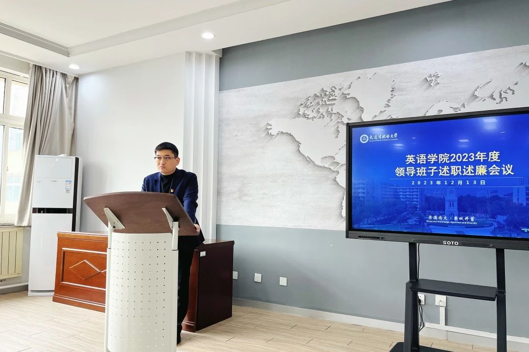 12月13日,英语学院在爱尔兰研究中心召开2023年度英语学院领导班子述职述廉大会,全体教职工参加会议。会议由学院党委副书记梁若冰主持。