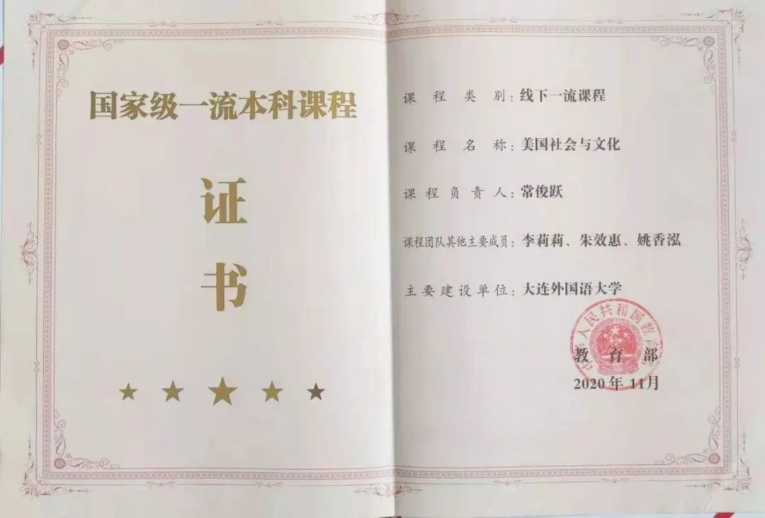 国家级一流本科课程《美国社会与文化》