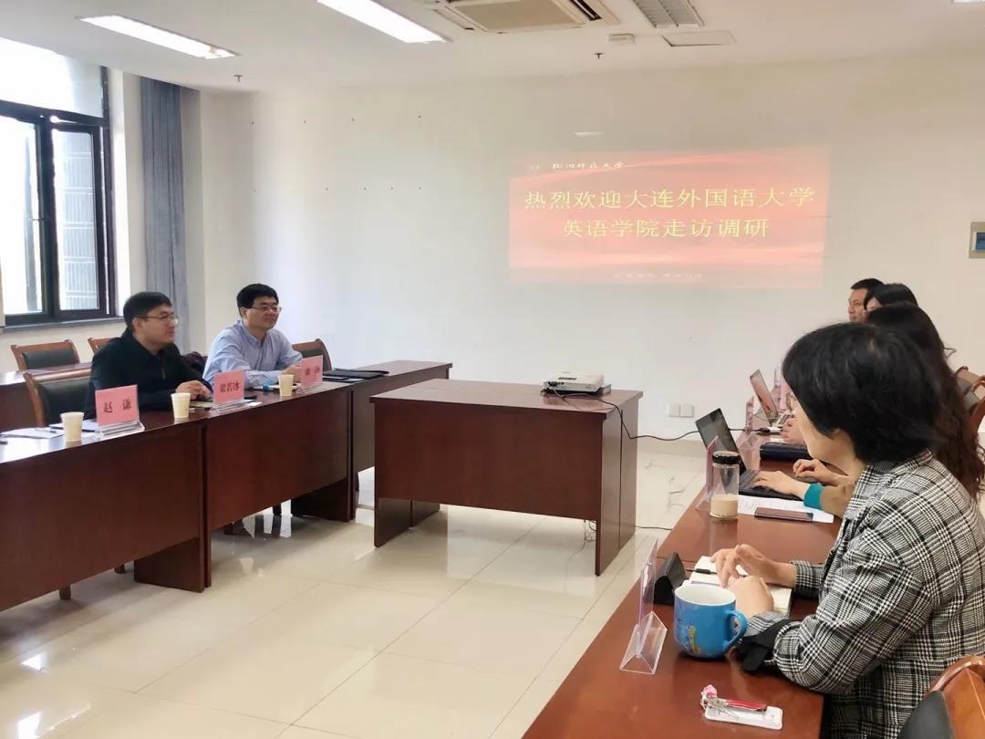 10月23日下午,英语学院党委副书记梁若冰、副院长曲涛、教学秘书赵谦一行三人赴杭州师范大学外国语学院调研交流。杭师大外院院长欧荣、党委副书记王倩、副院长李颖、学工班主任钱珊、研究生办公室主任李中华和教务科科长陈群阳参加会谈。