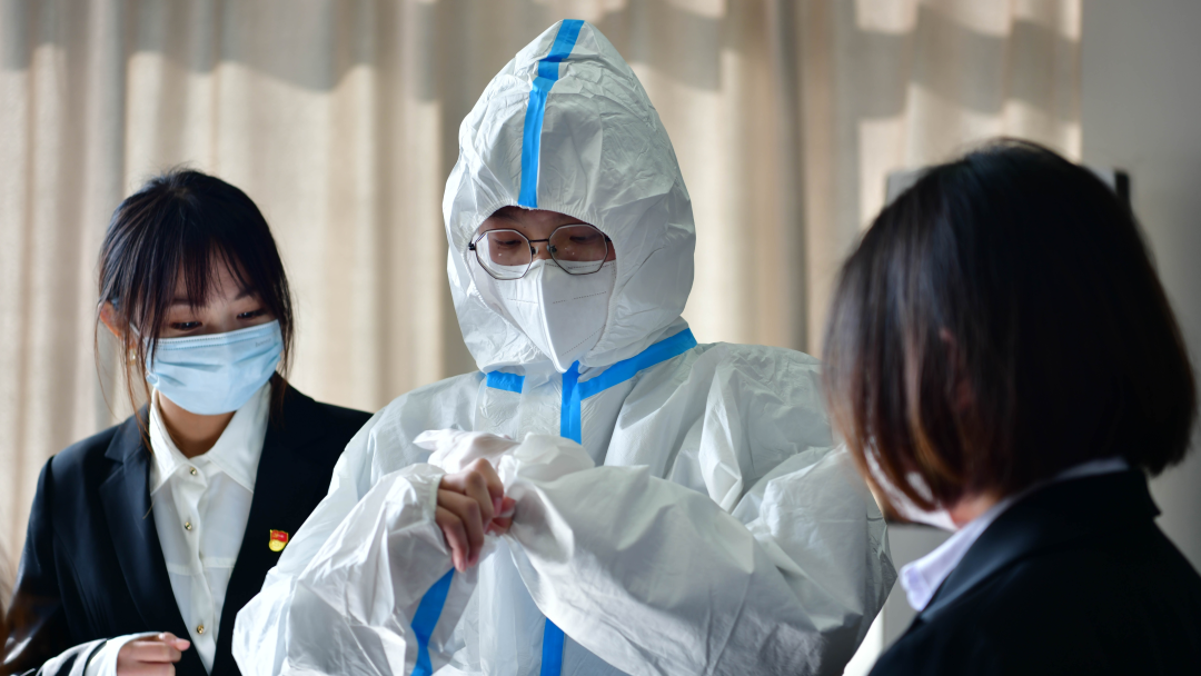 3月20日下午,英语学院线上线下同步召开了“疫中人”党员先锋队成立誓师大会。英语学院教工第一党支部、英语学院教工第二党支部的教师党员深刻地分析了当前的疫情形势,鼓励全体英语学院党员要敢打硬仗、能打硬仗、善打硬仗;在危难时刻显身手,以疫情防控工作来检验和拓展“不忘初心、牢记使命”的总要求和党史学习教育的成果,做到守土有责、守土担责、守土尽责。全体党员在会上重温入党誓词,重忆入党初心,共同学习了防护服的穿戴方式以及疫情紧急情况的处理方法。不忘初心,牢记党员使命,扛起守卫校园,冲锋在前的大旗。在这个春至雪消之际,英语学院所有共产党员致敬初心,以行动践行使命,用脚踏实地的作为书写下我们特有的抗疫故事。