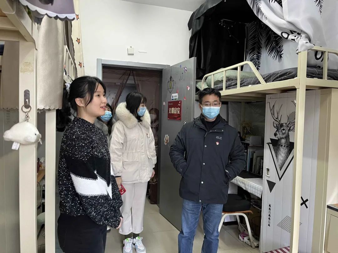与此同时,留校的曲涛副院长和各辅导员老师进行了走寝活动,通过近距离的直接交流,细心倾听同学们的心理感受及生活需求,并鼓励同学们保持良好的心态,在积极配合防疫工作的同时,也要积极参加体育锻炼,保持积极向上的学习态度。这不仅体现了老师们对同学们的热切关怀,也有助于老师切实了解现阶段的烦恼和心声,密切了师生关系,使老师和学生更紧密地联系在一起。