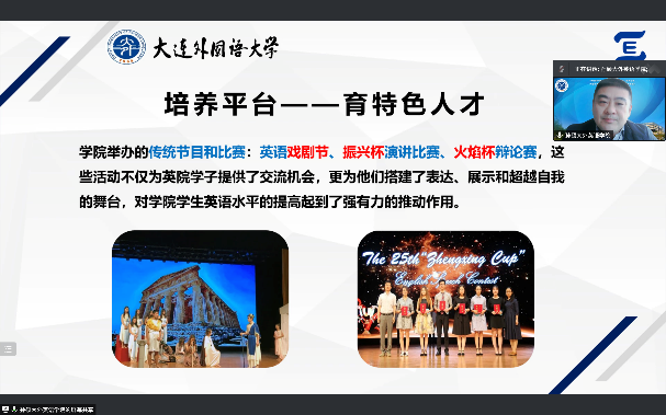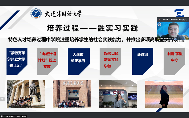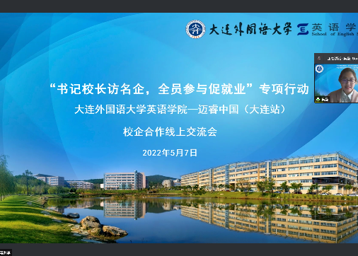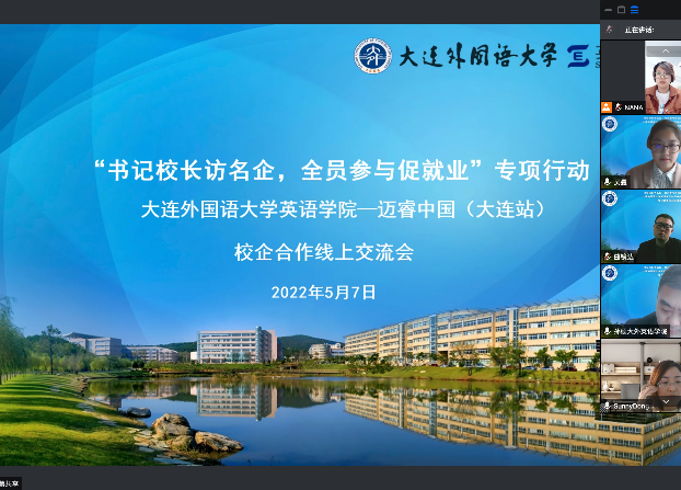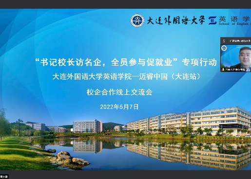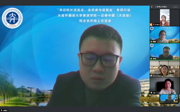 为进一步加强学院实践教学和实习实训,培养更多高素质、高技能的复合型、应用型外语人才,为我院学生实习、实践、实训、就业提供更大的发展空间,5月7日下午,英语学院与迈睿公司开展校企合作线上交流会。英语学院党委副书记兼纪委书记孙硕、团委书记曲镜达、研究生辅导员黄新智、2018级辅导员李延奇与2018级辅导员吴曼出席本次会议。