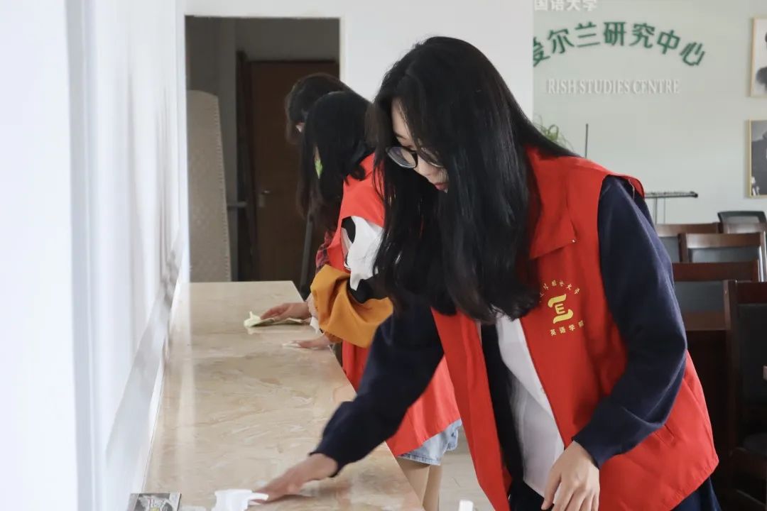 为深入贯彻落实我校《大连外国语大学劳动教育实施方案(试行)》精神,培养学生的劳动习惯,提高学生的自我服务能力与社会适应能力,英语学院充分利用劳动周时间,全面落实劳动教育实践。5月14日下午,英语学院“疫中人”党员先锋队身先士卒、以身作则,开展了教室清扫工作。全体党员分别对VR实训中心、党史书屋、爱尔兰中心、党史长廊及各教室进行了清扫。