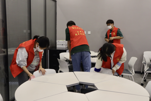 此次教室清扫工作不仅为在教室学习的同学们提供了更加干净、整洁的学习环境,更加强了党员自身的责任担当意识,充分发挥了英语学院“疫中人”先锋队的先锋模范精神,提高了我院党支部的凝聚力与向心力,以实际行动践行党员初心,展示了英院学子面对疫情的担当。和谐校园由你我共筑,让我们一起行动起来,为美丽校园建设积极贡献自己的力量!(卢焕)