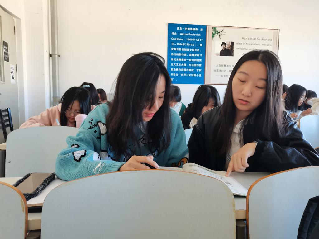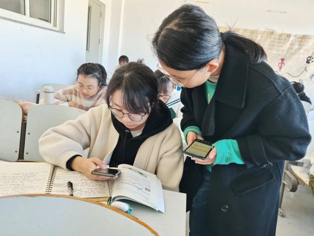 为了更好地保证新生晨读活动的效果和质量,学院为22级新生每班配备一名研究生助教,负责组织班内同学晨读秩序和答疑解惑。在遇到学习方面的困难时,同学们会及时、认真地向研究生助教请教,以此改正不足、提升自我,促进听、说、读、写能力的多方面发展。