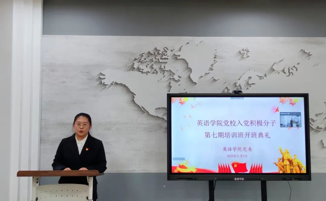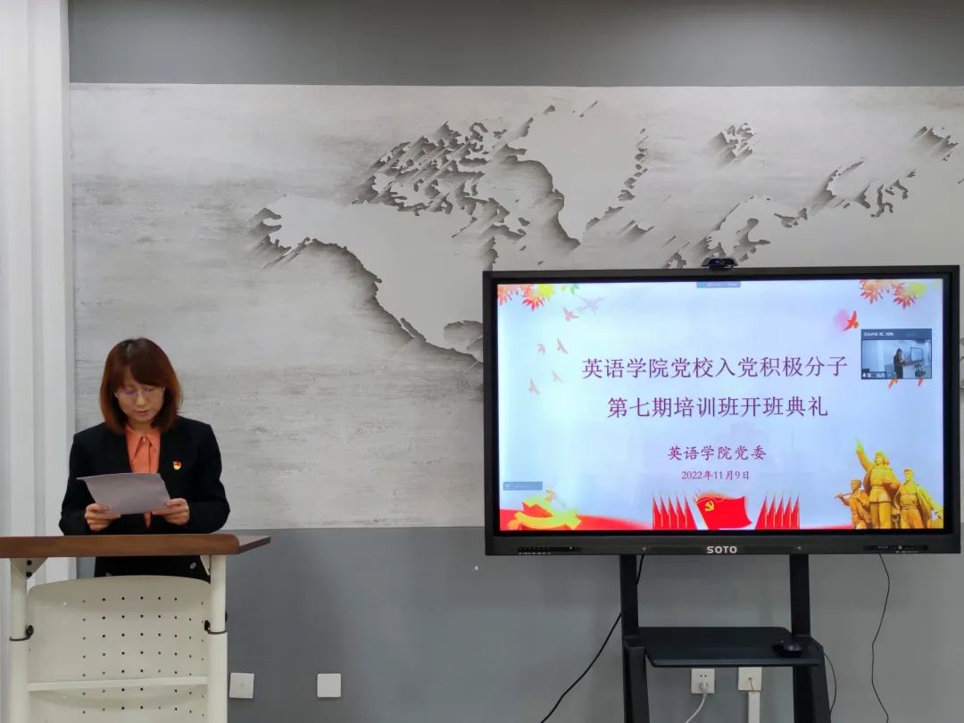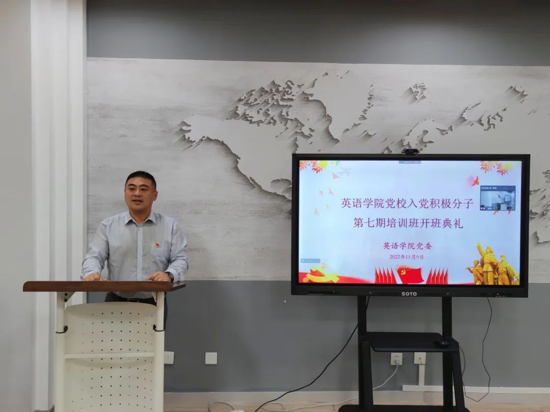 11月9日下午,英语学院第七期入党积极分子培训班开班典礼于爱尔兰研究中心举行。开班典礼由副处级组织员汪霞主持,英语学院党委梁若冰副书记、党委副书记兼纪委书记孙硕、本科生第一党支部书记曲镜达、研究生党支部书记黄新智、2019级辅导员吴曼、2021级辅导员达尼亚尔江·亚力坤江和2022级辅导员李延奇出席本次开班典礼。