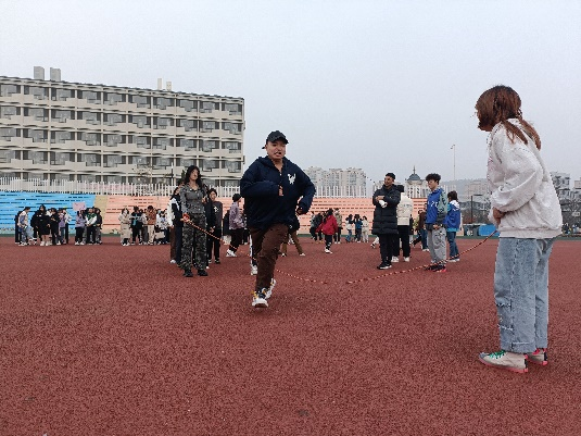 跳大绳比赛中,同学们互相配合,整个环节在轻松愉悦的氛围中有序进行。