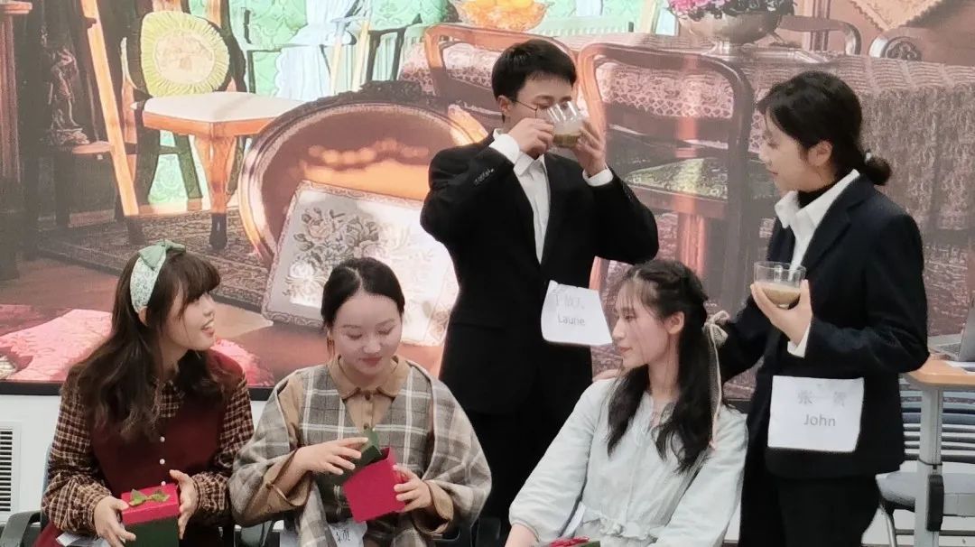 接下来,五班带来了经典剧目Pride and Prejudice,他们配合默契,让经典故事焕发新机,生动形象地展示了女主人公自强不息的女性形象。