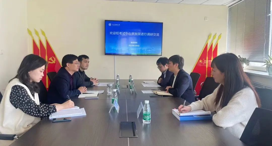 5月9日,大外考试中心主任潘启娇、技术部主任张保及李琬玲老师一行三人来到英语学院开展调研。学院副院长曲涛、2021级辅导员达尼亚尔江·亚力坤江和教学秘书赵谦参加交流座谈。