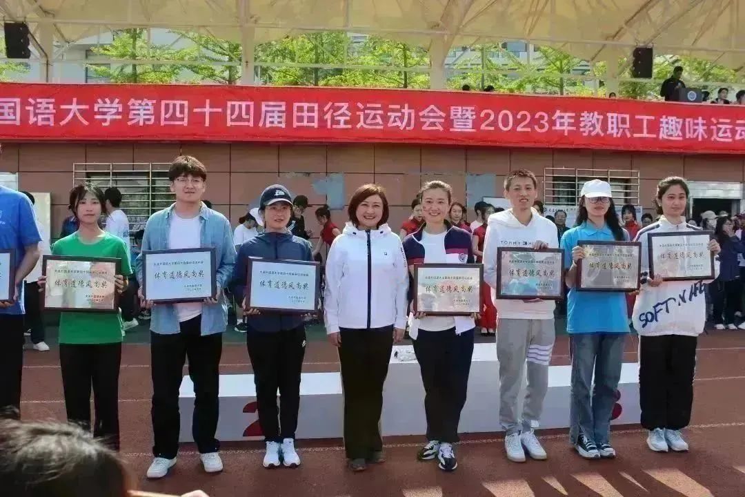 在英语学院全体师生的共同努力拼搏下,英语学院取得教工女子第一名、教工男子第二名、学生女子第一名、学生男子第四名的优秀成绩,并摘下“体育道德风尚奖”的荣誉称号,在本次运动会上载誉而归。