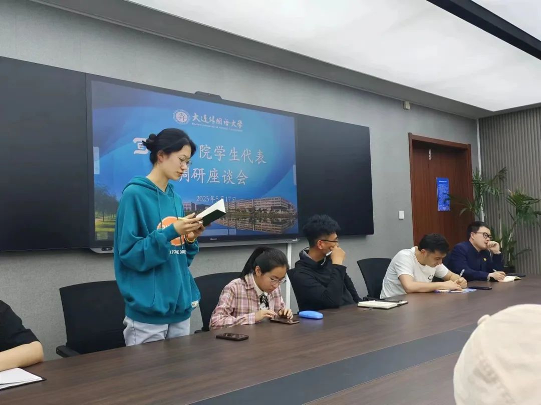 为了加强和同学们的沟通交流,深入了解同学们的需求,提升学院教育教学以及生活服务质量,英语学院于5月17日下午召开了学生代表调研座谈会。党委副书记兼纪委书记孙硕、2019级辅导员曲镜达和吴曼、2020级辅导员王艺凝、2021级辅导员达尼亚尔江·亚力坤江、2022级辅导员李延奇、研究生辅导员黄新智、学生处内派教师徐璟锋及各年级学生代表出席本次会议。