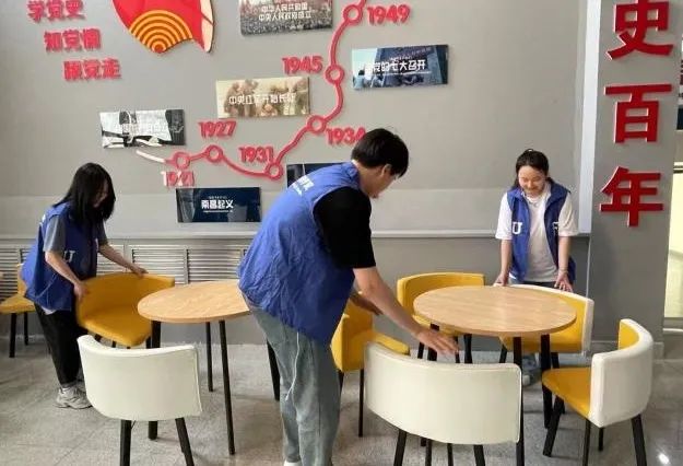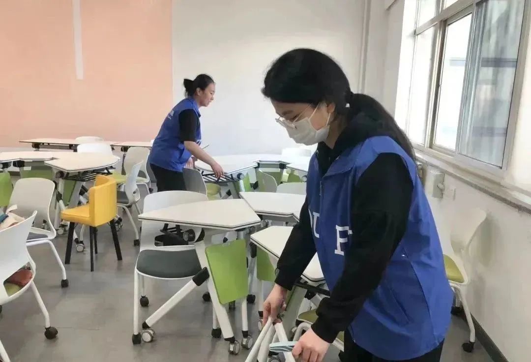 与此同时,英语学院组织成立青年突击队,迅速划分小组,进行分工,对公共教室和智慧教室的卫生进行打扫,摆放桌椅,擦拭灰尘,致力于号召同学们主动参与到劳动实践当中。