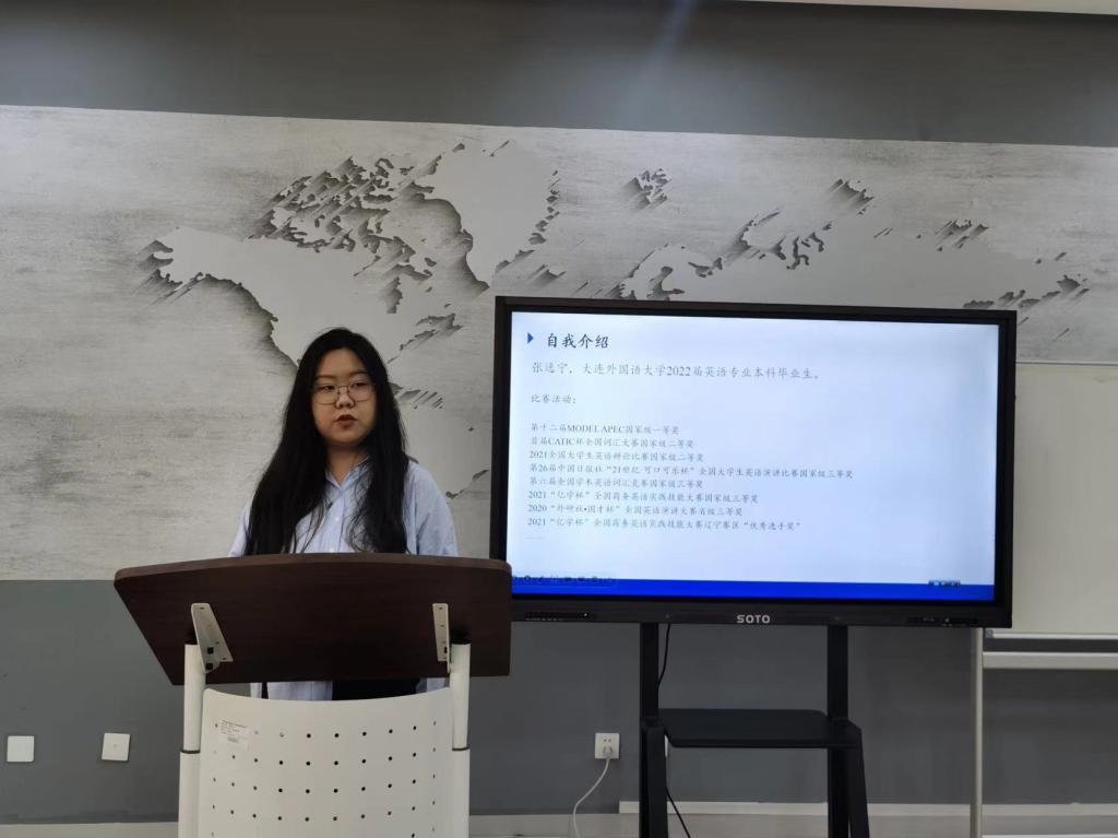 会上,张逸宁介绍了自己四年来的学习经历,并从专业课程学习、竞赛科研经历、经验教训总结以及学生干部经验四个方面进行经验分享。在专业课程学习方面,她展示了自身的专业课成绩,并对一些难度较大课程的学习方法进行了详细阐述。在竞赛科研经历方面,张逸宁分享了自己在MODEL APEC和全国大学生英语辩论比赛等重要比赛中的感受,并以MODEL APEC为例,对参赛流程和细节予以介绍。在经验教训总结方面,她为同学们的学业规划提出建议并做出总结。最后,张逸宁向大家讲述了自己的学生干部经历以及个人感悟,为大家提出很多建议。而后会议进入互动提问环节,对于同学们提出的疑问,张逸宁予以耐心解答,现场同学们收获颇丰,气氛热烈融洽。