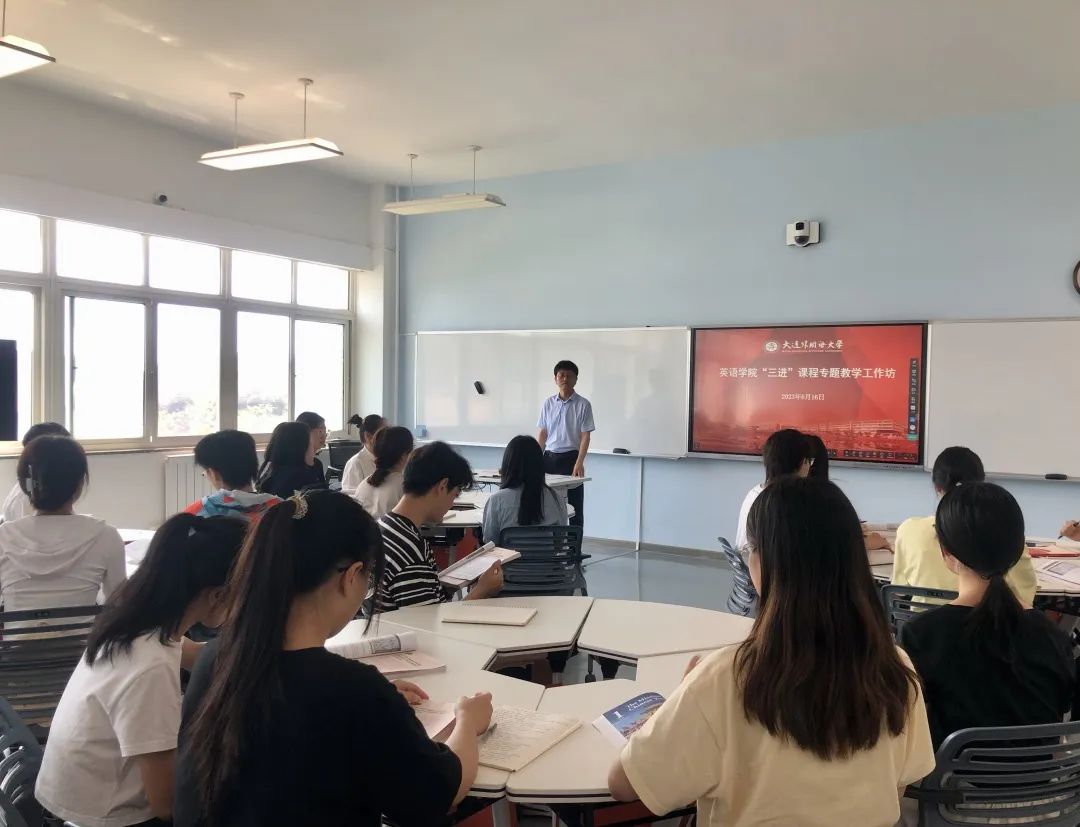 为进一步落实“三进”工作纵深推进,深化课程思政建设和教材体系创新,英语学院举办“三进”课程专题教学工作坊。本次工作坊邀请刘翔副教授进行“知中国·观寰宇:《综合英语:当代中国思想经典》课堂教学展示”。工作坊由副院长曲涛主持,院长吕春媚、学院新进教师和“三进”课程授课教师参加。
