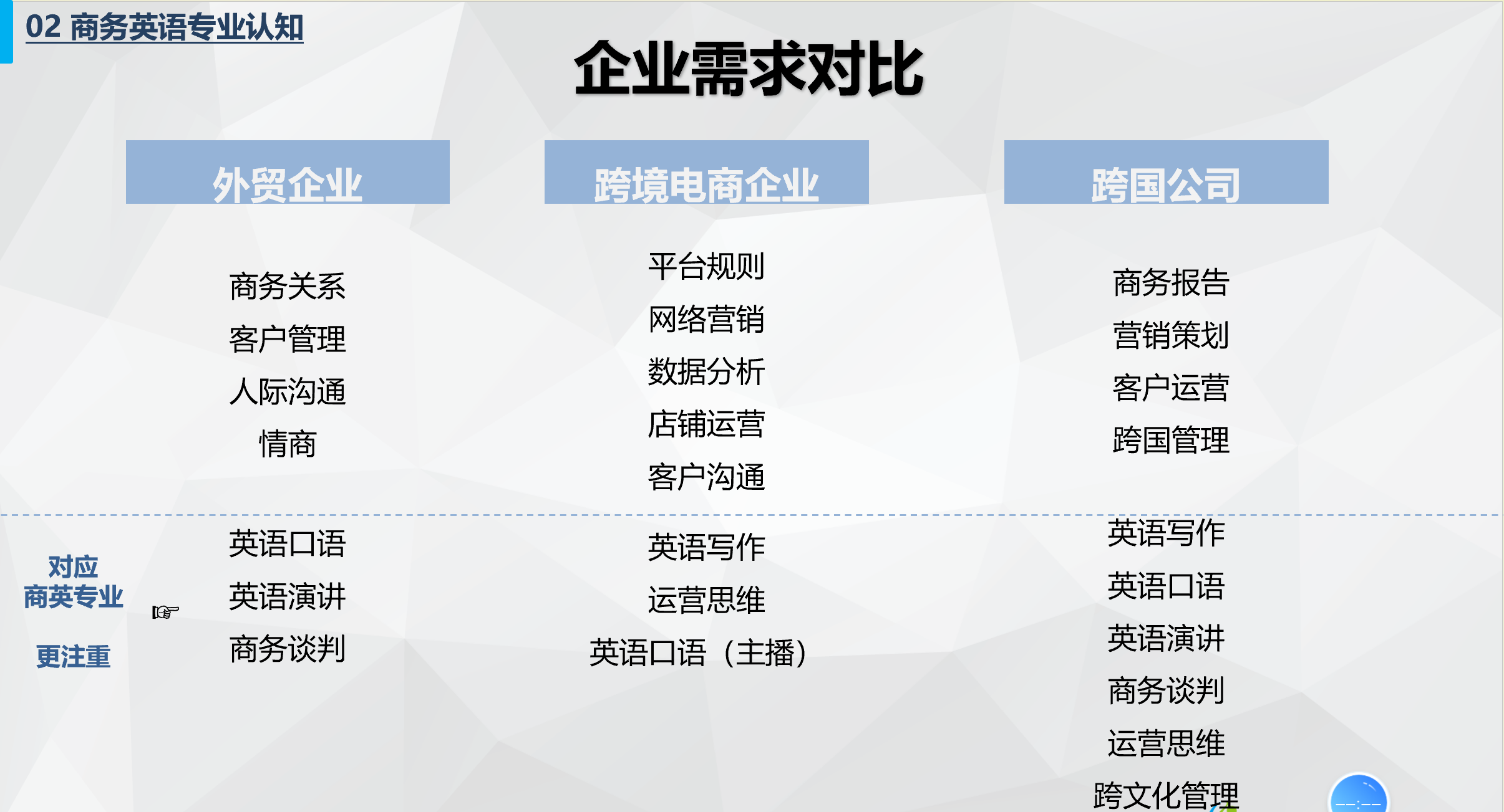 为深化产教融合,促进校企合作,助力人才培养模式改革与创新,加强“专创融合”理念在教学实践中的应用,提升学生跨文化商务沟通能力、创新创业能力、面试应变能力、职业规划能力等,英语学院大力推出“企业家进课堂”系列活动,充分利用多方企业资源提升学生的就业创业综合素养。同时,英语学院以本次活动为契机,跟进时代发展,结合前沿趋势,迈出创新型教学实践新步伐,致力于培养满足国家发展需求的优秀人才。本次“企业家进课堂”系列活动影响广泛,深受好评,涉及《跨文化商务沟通》《数字经济前沿》《国际商务谈判》《商务英语专业导论》四门课程,主要分为专题讲座、企业家与教师合作授课两种形式。活动一