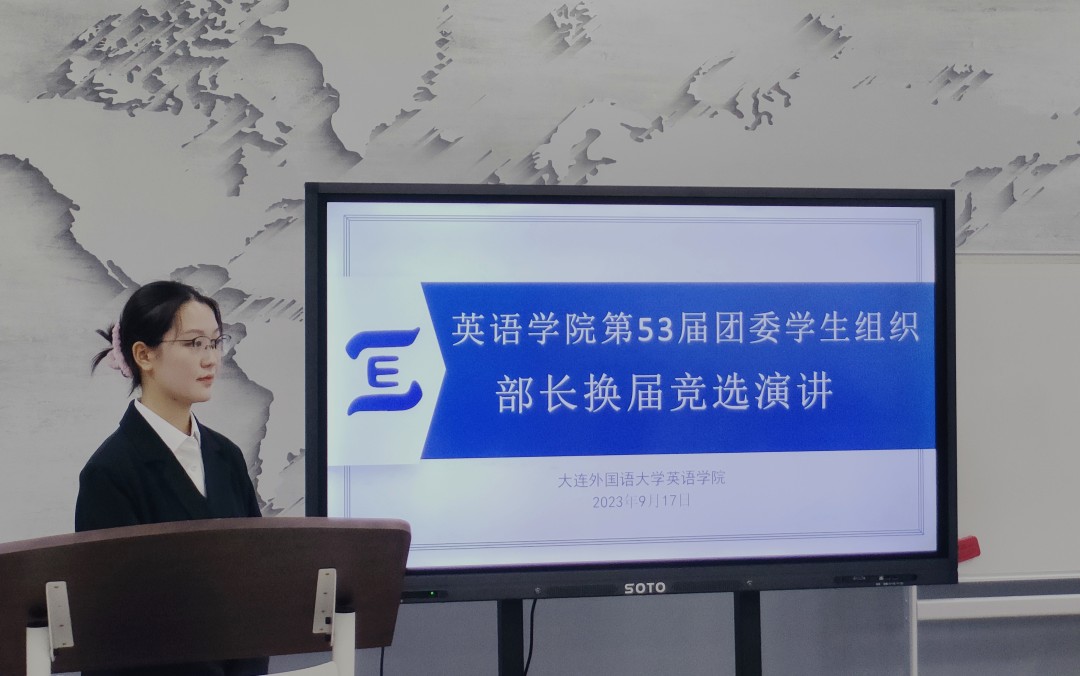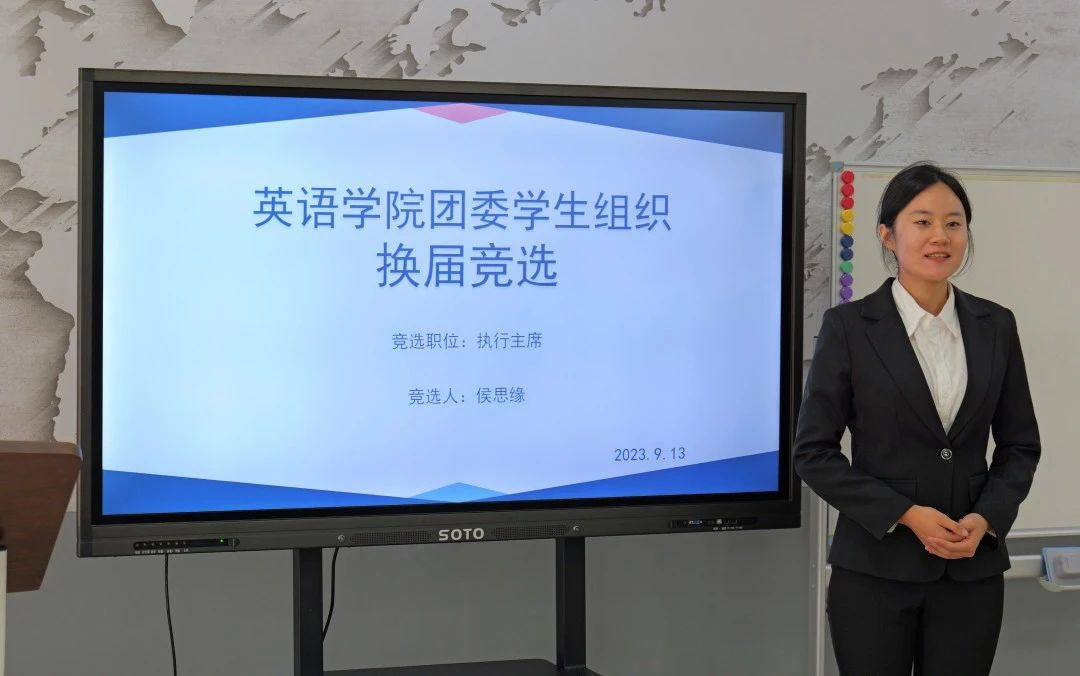 9月13日,第53届英语学院团委学生组织主席团选举在励业楼爱尔兰中心正式举行。本次选举面试的评委由党委副书记兼纪委书记孙硕、英语学院团委书记兼2023级辅导员曲镜达、2021级辅导员达尼亚尔江·亚力坤江和第52届英语学院团委学生组织主席团成员参与评分。竞选过程包括个人演讲和评委随机提问两部分,每位竞选者发言后,由评委进行打分。