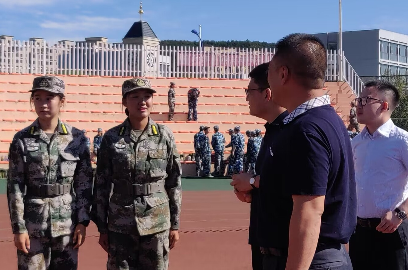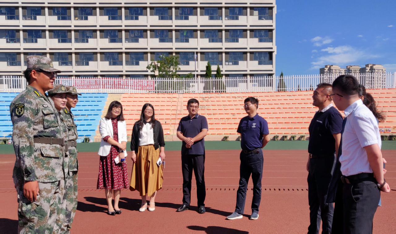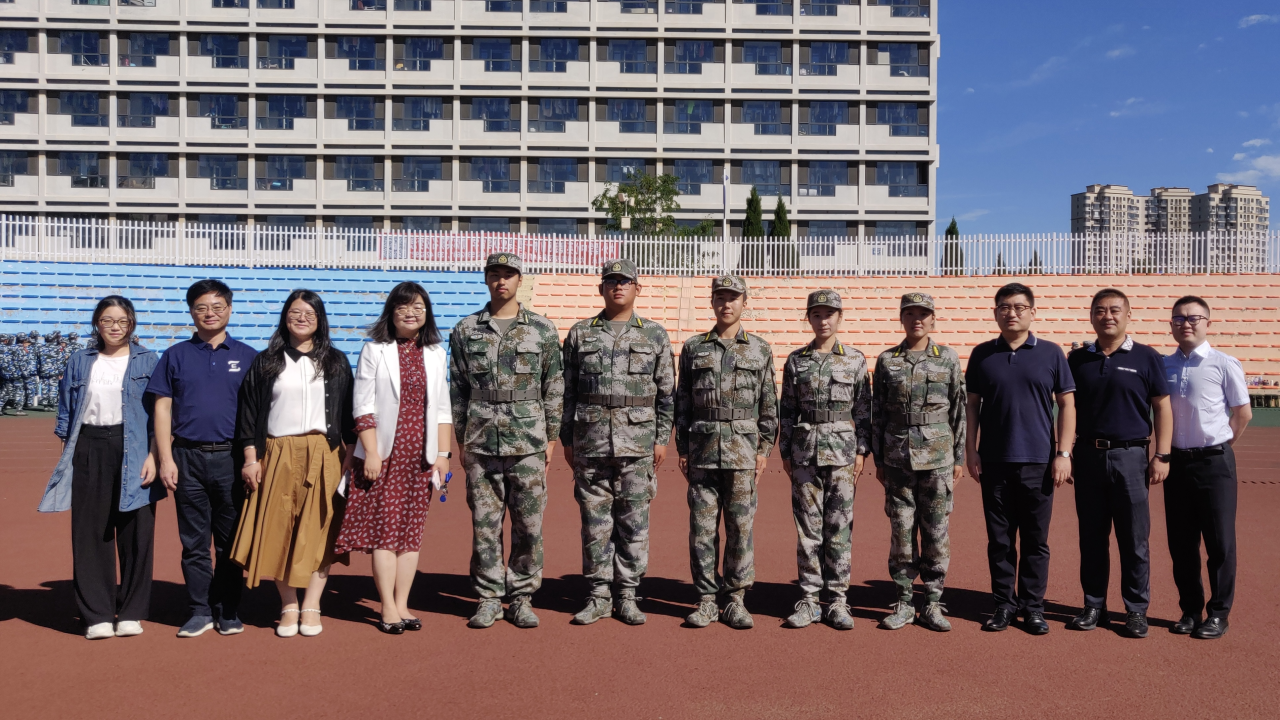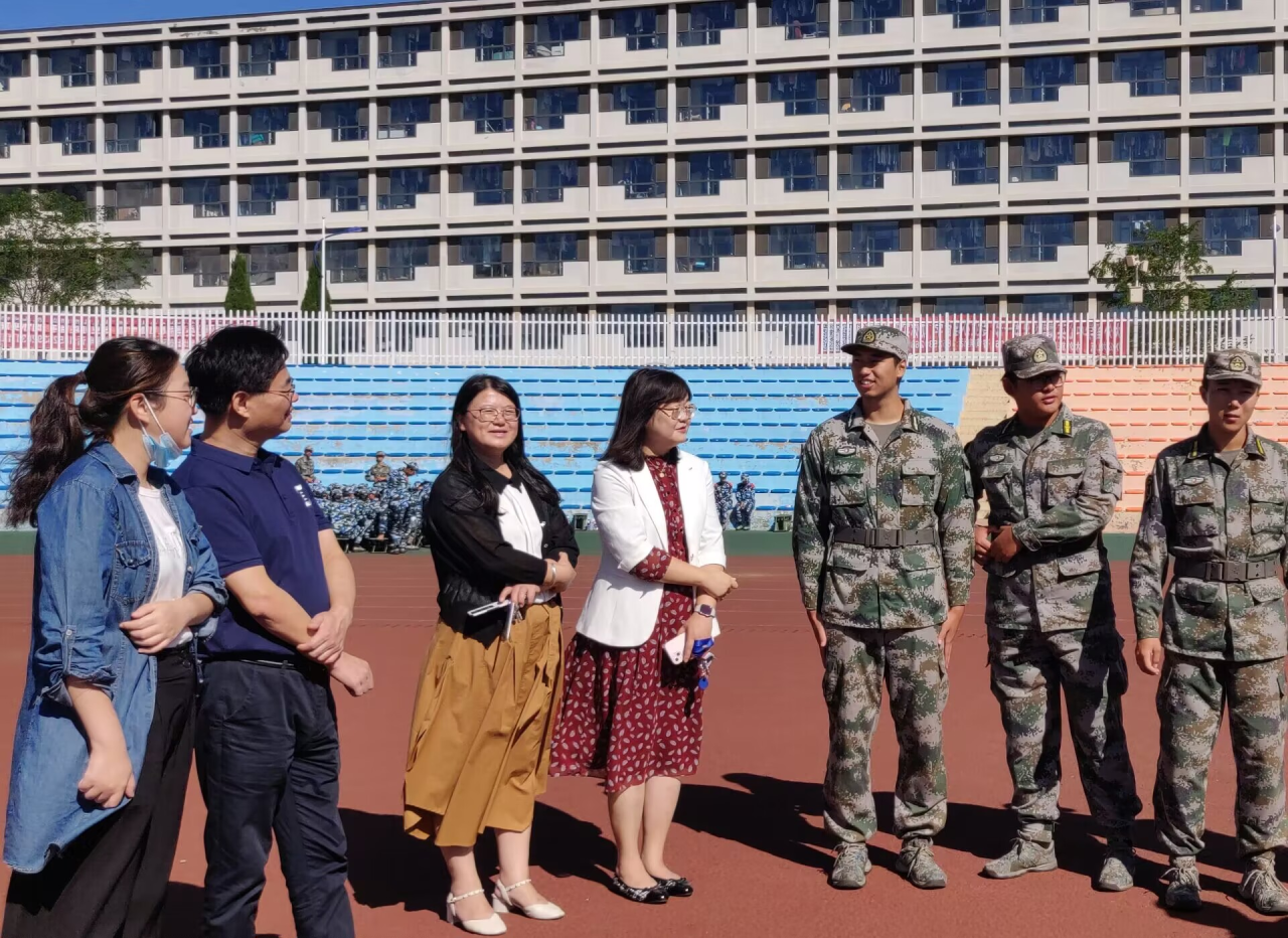 9月20日上午,英语学院院长吕春媚、党委梁若冰副书记、党委副书记兼纪委书记孙硕、副院长曲涛、副院长刘晓晖、团委书记兼2023级辅导员曲镜达以及2023级辅导员吴曼走访探望我院军训教官及2023级军训新生。