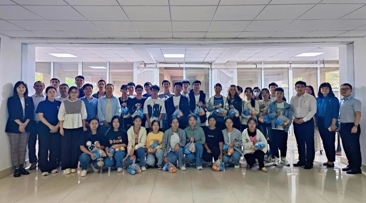 金秋圆月天边挂,双节英院情意浓。9月27日,英语学院全体班子成员和全体辅导员一同前往宿舍慰问部分2023级本科新生。