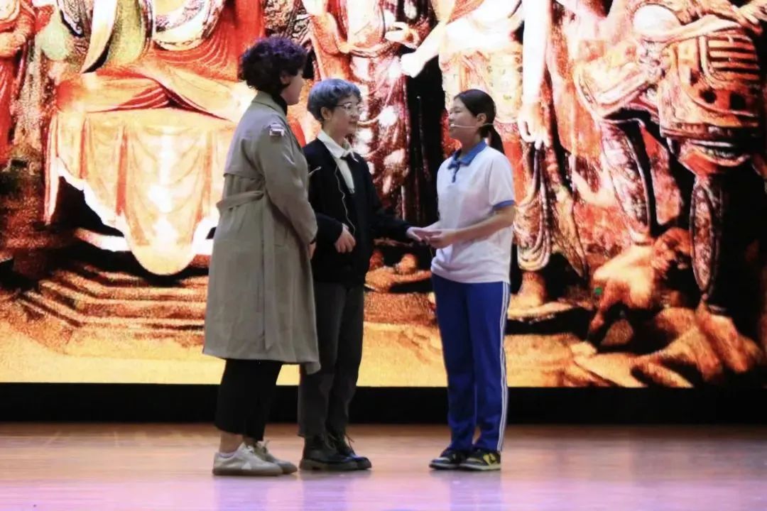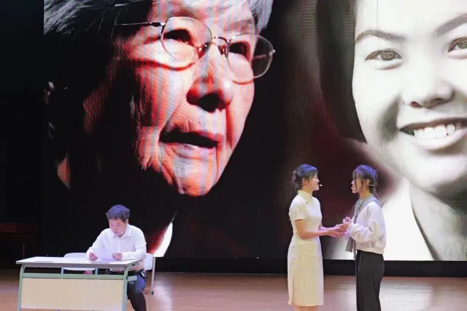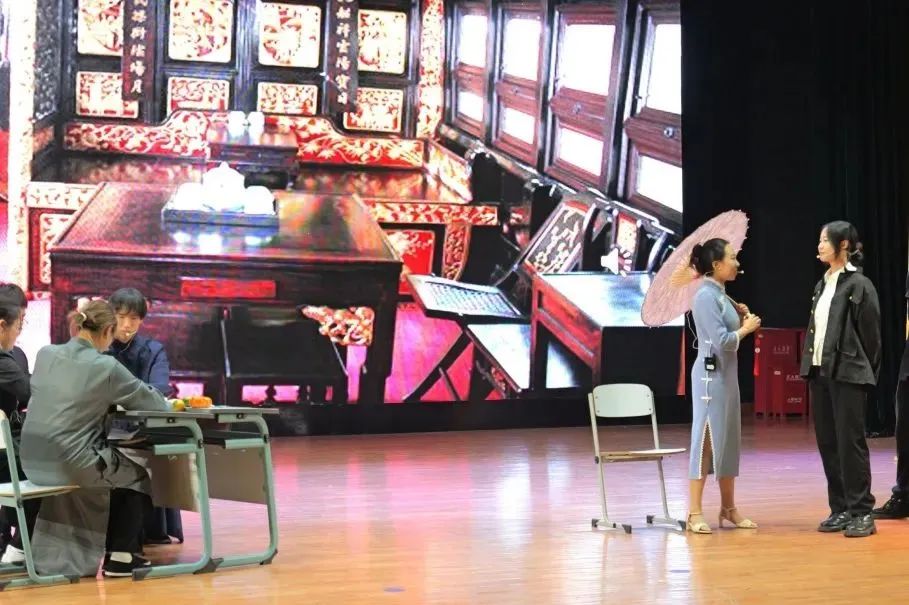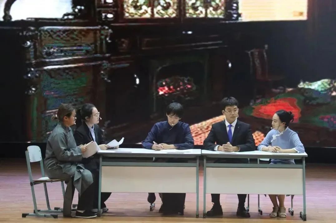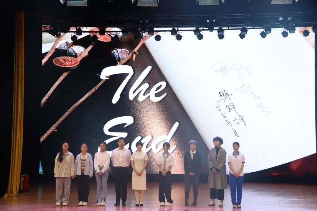 伴随着观众们的期待,英语学院1队的同学们聚焦热点人物樊锦诗,表演了《我心归处是敦煌》这一剧目。每一粒起舞的黄沙,演员们每一句掷地有声的话语,都在歌颂她的青春年华和无私奉献。