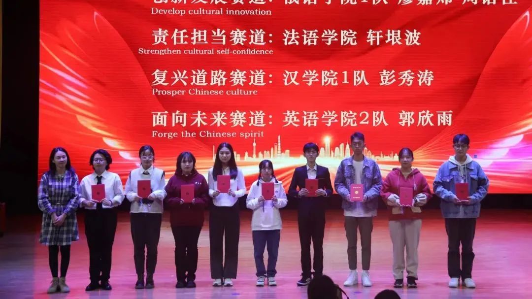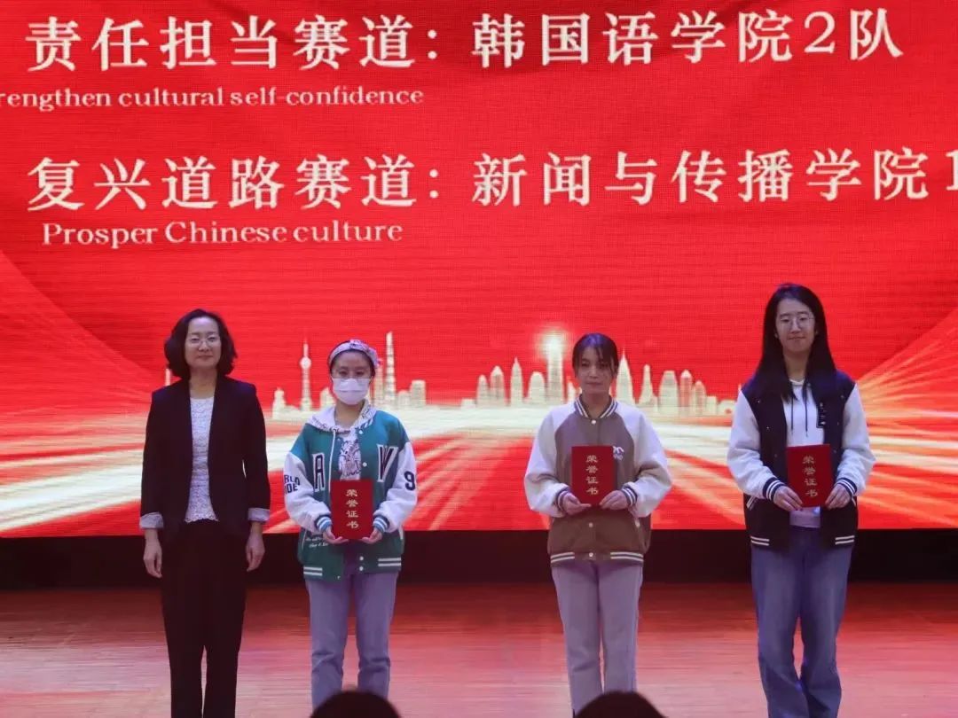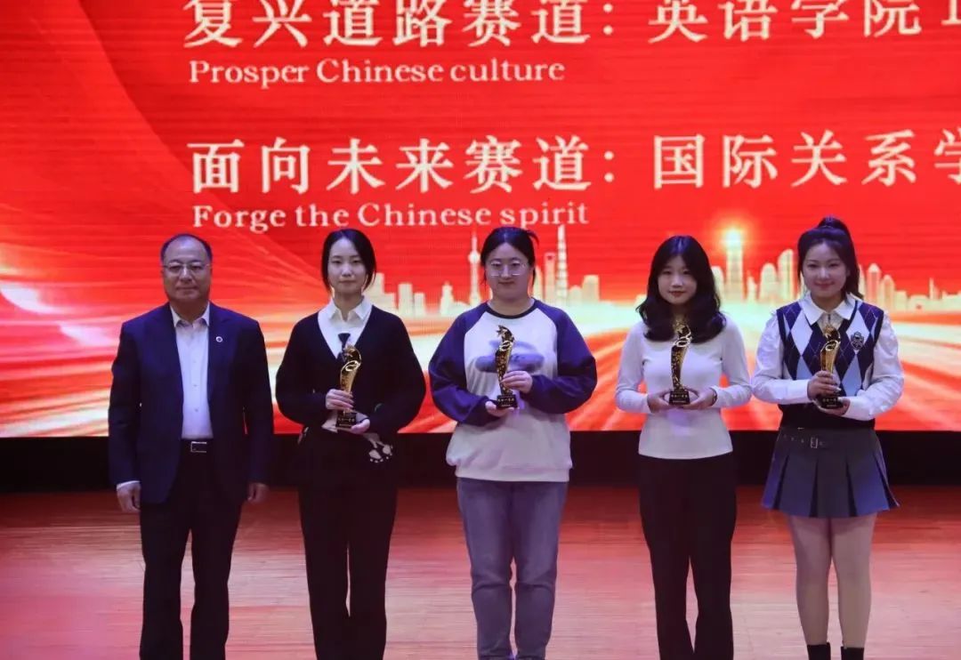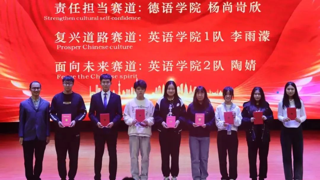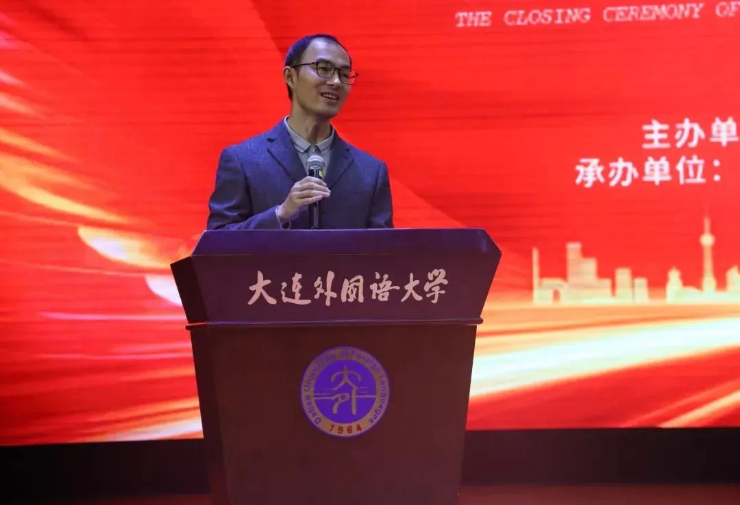 英语学院副院长王成东致闭幕词,他鼓励同学们怀抱梦想、脚踏实地,敢想敢为又善作善为,积极担负起强国复兴使命,为中国梦接续力量。