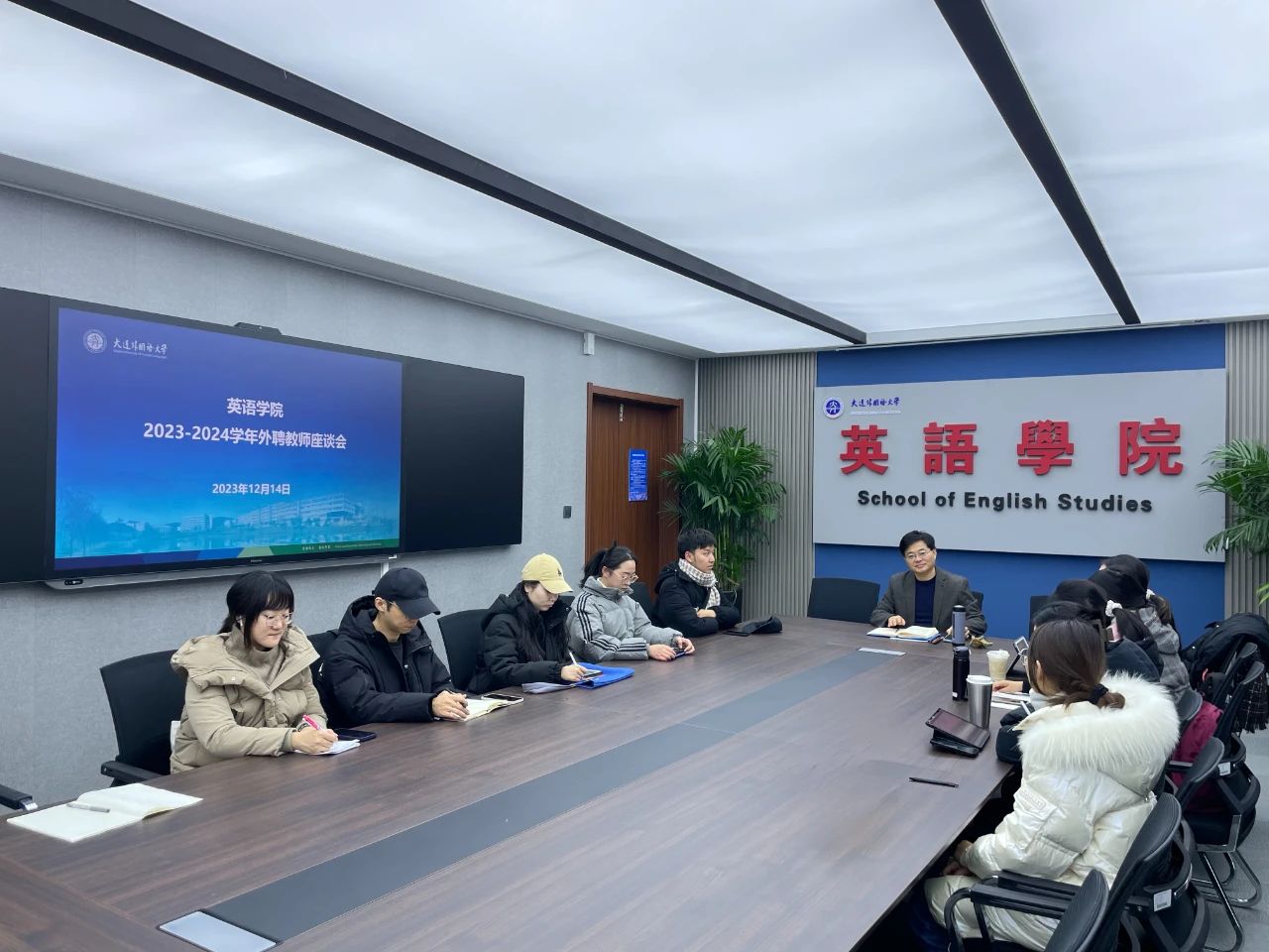 为贯彻落实立德树人根本任务,加强师资队伍建设,进一步推进本科教育教学审核评估工作,12月14日,英语学院召开2023-2024学年外聘教师座谈会。会议由副院长曲涛主持,全体外聘教师参加。