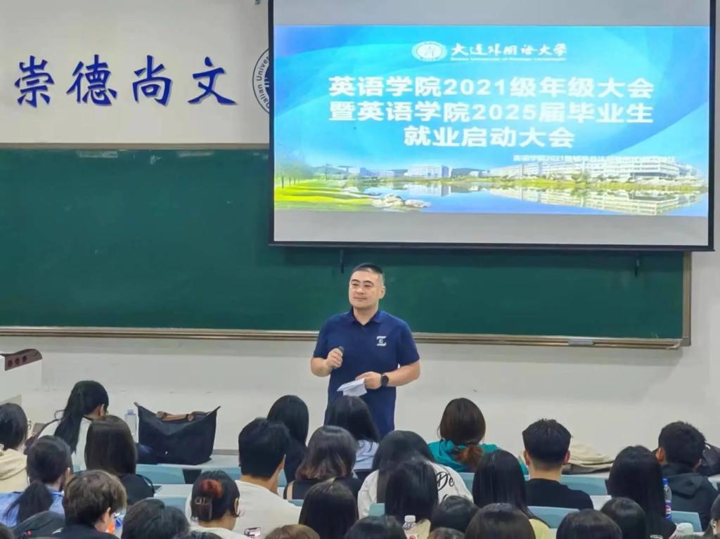 为引导毕业生充分了解当前就业形势,合理规划未来的职业道路,英语学院于5月30日召开了2021级年级大会暨2025届毕业生就业启动大会。本次会议由英语学院2021级辅导员达尼亚尔江·亚力坤江主持,党委副书记兼纪委书记孙硕主讲。