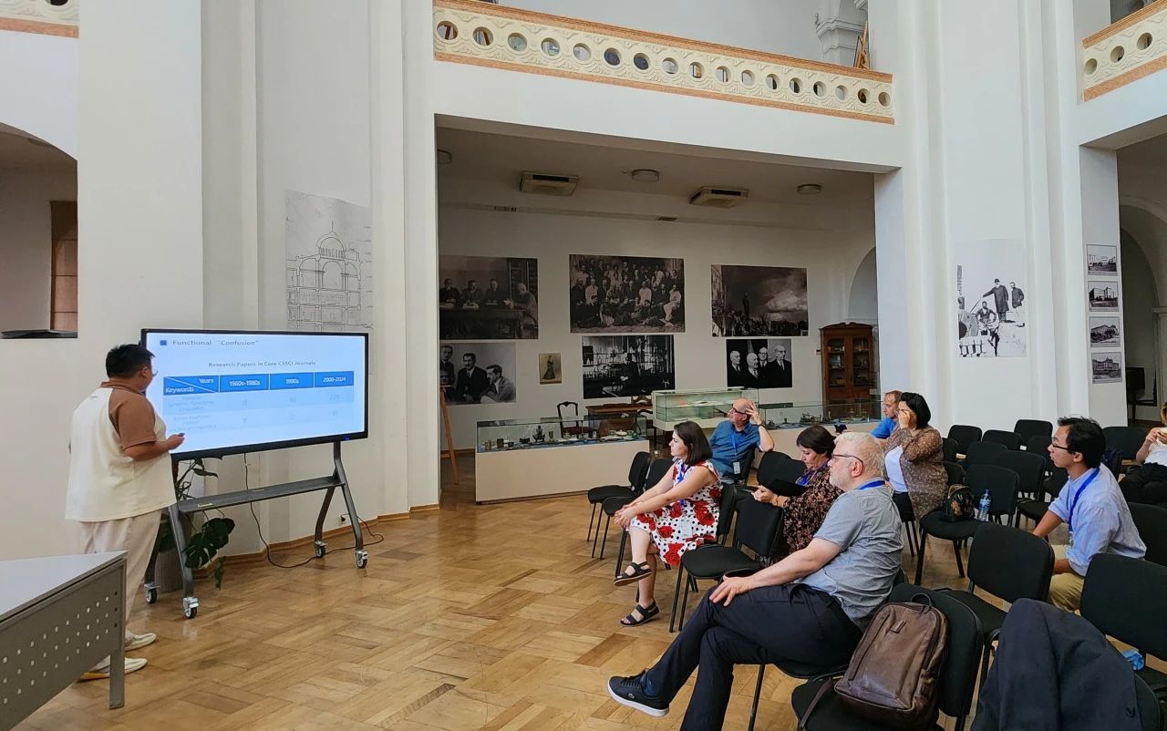 主题工作坊吸引了众多海外学者的积极参与。美国芝加哥大学埃尔文·孟博士做了题为《从华文圈的诗学到欧亚语言学——近代早期的虚词概念》的发言,分析了中国传统诗学语文学中的虚词概念对西方早期语言学的影响。会议承办方总负责人、第比利斯国立大学教授汀娜汀·波尔克瓦泽,格鲁吉亚汉学家协会主席、第比利斯自由大学教授、孔子学院院长玛琳娜·吉布拉泽,西澳大利亚大学教授大卫·莫尔,圣彼得堡俄罗斯科学院资深研究员阿列克谢·安德罗诺夫等学者先后在工作坊提问。英国亨利·斯威特语言学思想史研究会会长、威斯敏斯特大学副校长安德鲁·林恩教授讨论时在座。德国著名汉学家何莫邪教授为工作坊发来贺信。