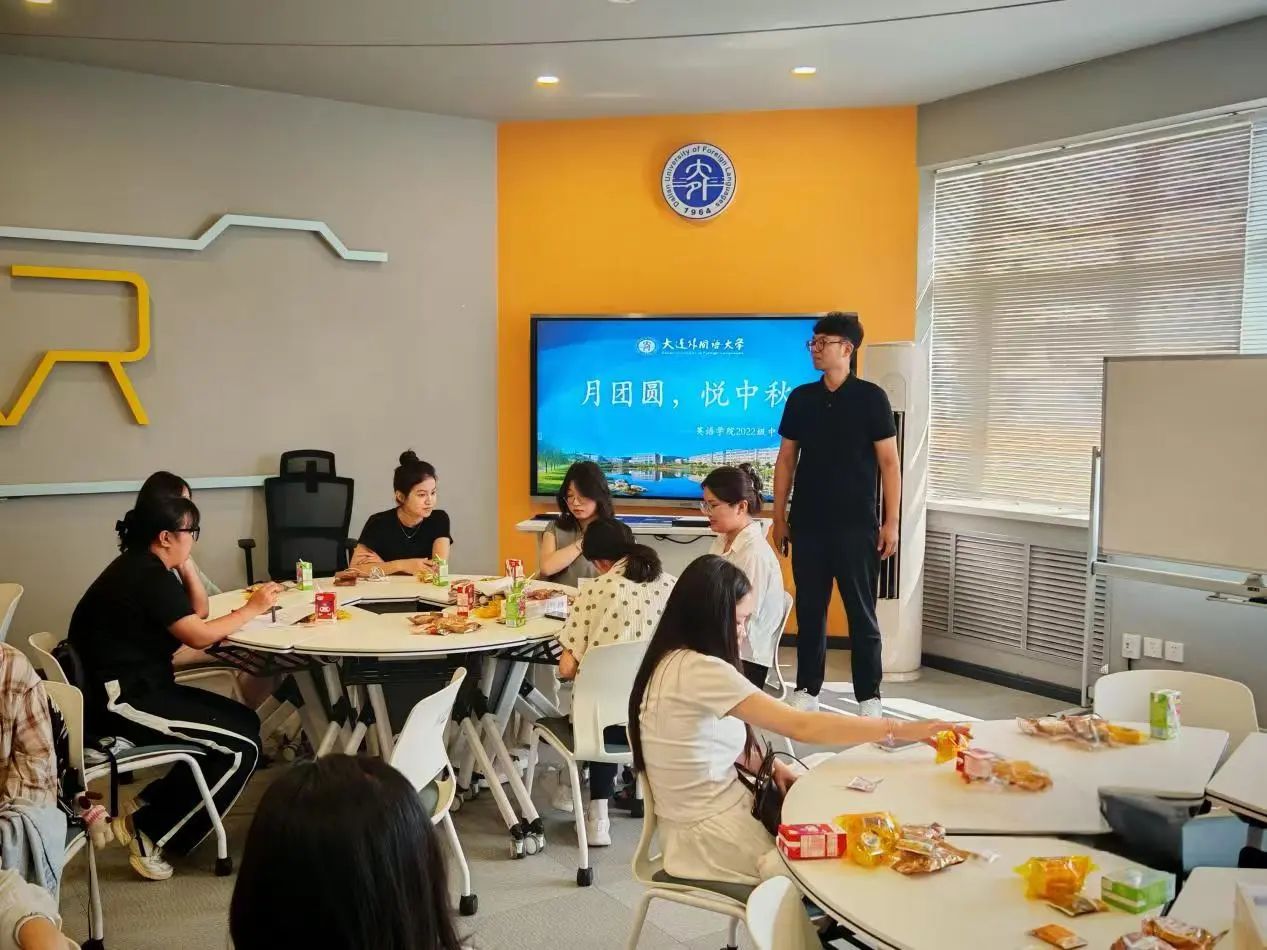 英语学院2022级本科生在辅导员李延奇老师的带领下于励业楼VR实训中心共度中秋佳节。大家齐聚一堂,做游戏、赢奖品,笑语欢歌,老师也亲切询问大家的近况,为同学们答疑解惑。月饼的甜香和笑意拂在每一位同学的脸上,在宣传中秋传统文化的同时,充分体现了学院对学生的人文关怀,让归属感和幸福感走进每一位学生的心里。