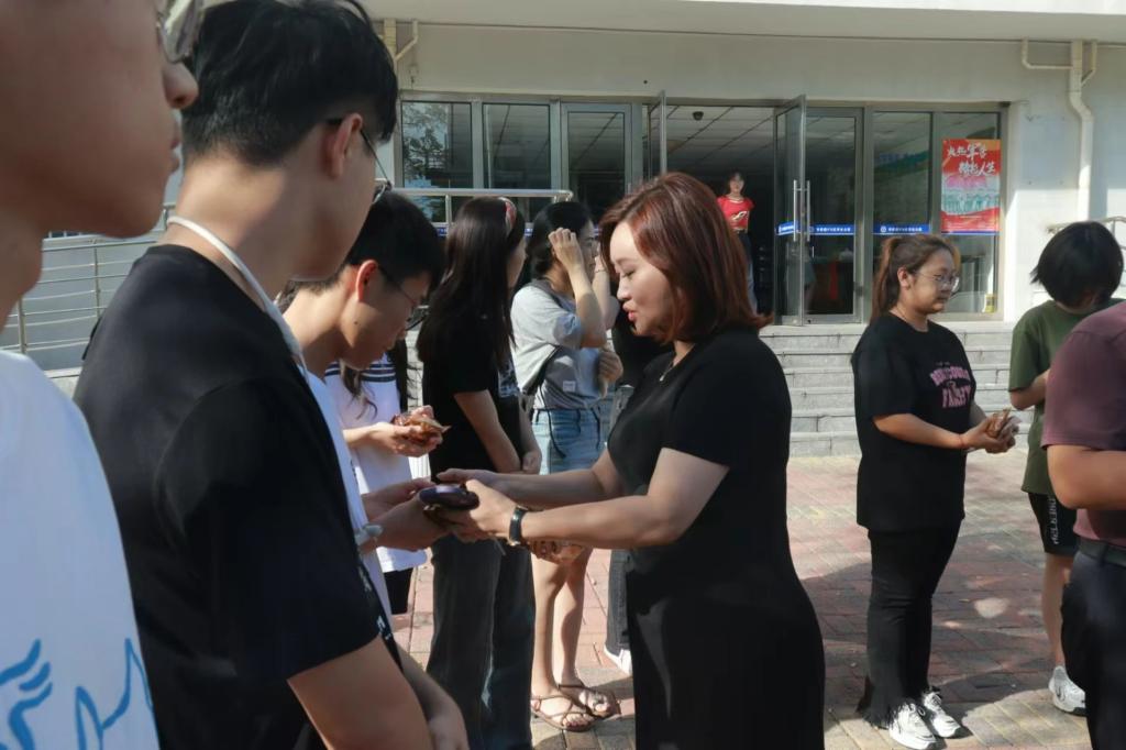 随后,各位领导老师启程前往书香园3号楼,对2023级在校学生代表进行亲切慰问,并为他们发放大外特制的纪念月饼。希望这枚充满心意的月饼能够为宿舍平添一抹节日的喜庆,宽解各位同学的思乡之情,让大家感受到英语学院大家庭的温暖。