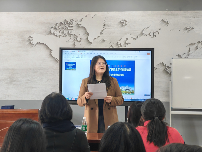 下午13点,大连外国语大学英语学院副院长刘晓晖教授主持开幕仪式并致辞。刘晓晖副院长对校内外与会的研究生们表示热烈欢迎。刘晓晖副院长强调,研究生是未来国家创新驱动发展的中坚力量,希望研究生们能够在本次论坛中积极参与讨论,汲取学术养分,勇敢突破学术舒适区,形成跨学科交流模式,产出高水平标志性创新成果。希望大家一起携手共进,将英华论语学术创新论坛打造成更具影响力的学术创新高地,为学术发展注入源源不断的活力。