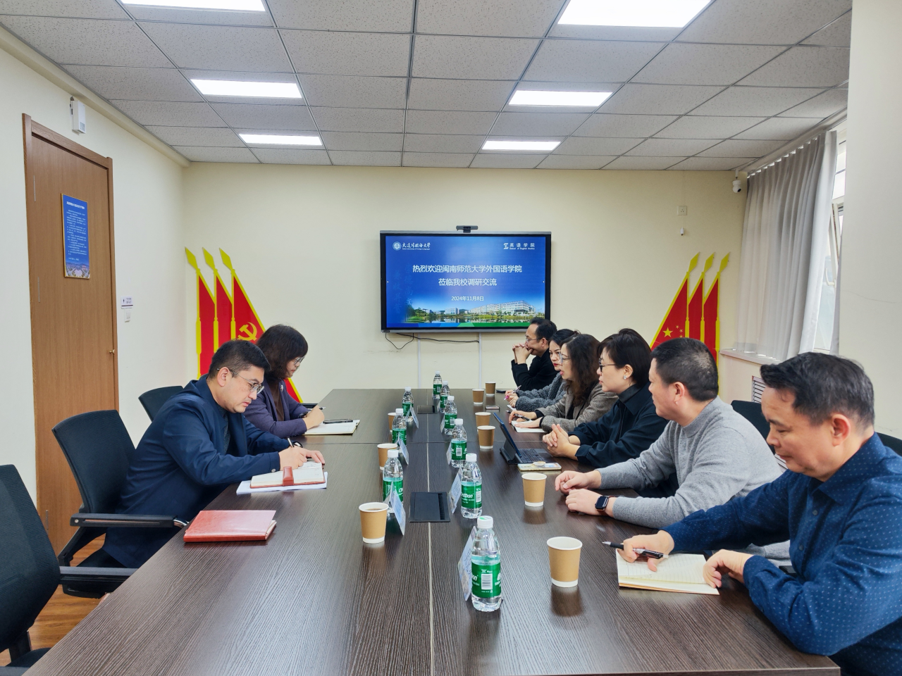 11月8日上午,闽南师范大学外国语学院党委书记陈慧燕一行6人来访英语学院。英语学院党委书记梁若冰、院长吕春媚、办公室主任郭庆霞在励业楼427会议室与陈慧燕一行举行座谈。