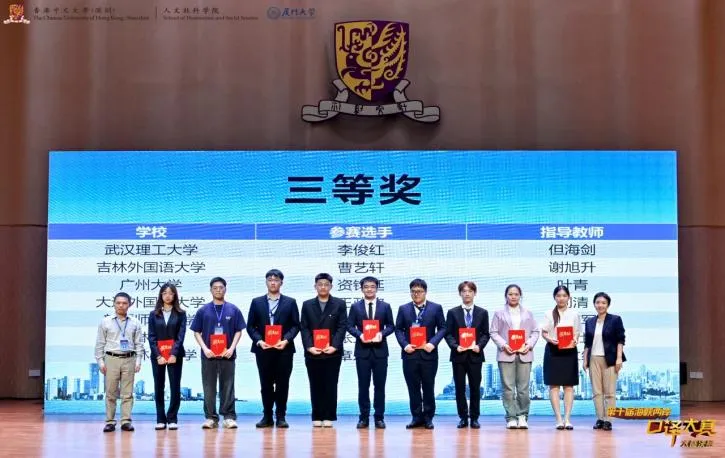 11月8日,第十届海峡两岸口译大赛大陆决赛在香港中文大学(深圳)落下帷幕。我院2022级学生王政钦获得本次决赛三等奖。