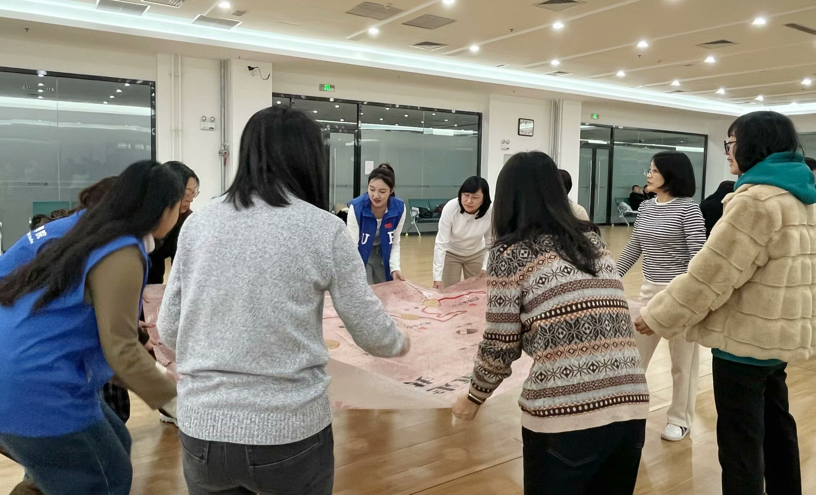 在“支援前线”任务中,老师们手持接力棒传递小球直至终点即完成任务。此任务考验了老师之间的配合与默契,也充分展现了长征背后的支援保障的重要性。