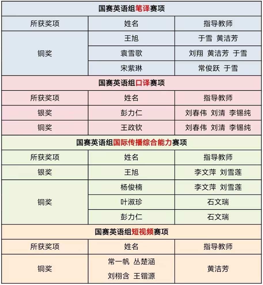 12月9日,2024“外研社·国才杯”“理解当代中国”全国大学生外语能力大赛国赛圆满落幕。在比赛中,英语学院学子们展现出了自己的独特风采,现将名单公示如下。