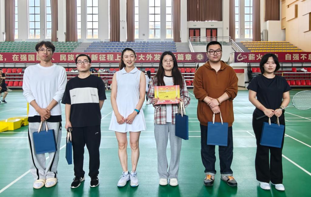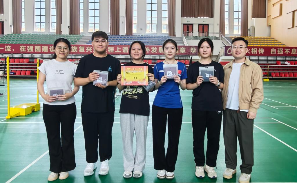 为弘扬体育精神,增进英语学院师生之间的交流互动,5月13日中午,英语学院于新文体馆羽毛球馆开展师生羽毛球友谊赛暨“五羽伦比”班级友谊赛颁奖。英语学院团委书记曲镜达、2021级辅导员达尼亚尔江·亚力坤江、2022级辅导员李延奇、2024级辅导员王艺凝、教师朱德全、宋平平参与此次活动。