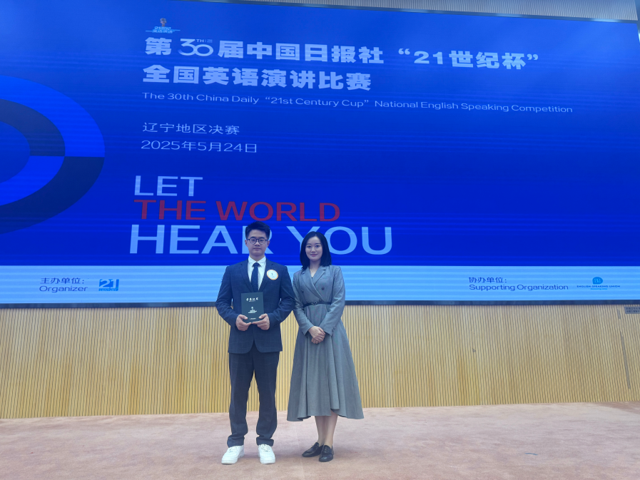 5月24日,第30届中国日报社“21世纪杯”全国英语演讲比赛辽宁省决赛在辽宁大学圆满结束。我校英语学院2022级学生彭力仁荣获一等奖,成功晋级国赛。