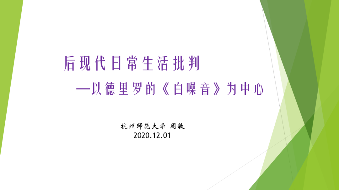 12月1日,杭州师范大学周敏教授应我校科研处与英语学院邀请,通过腾讯会议平台为我院师生做了题为“后现代日常生活批判”的学术讲座。本次讲座是我院英语文学系列讲座之一,由李文萍教授主持,我院教师及硕士研究生共同聆听了此次讲座。