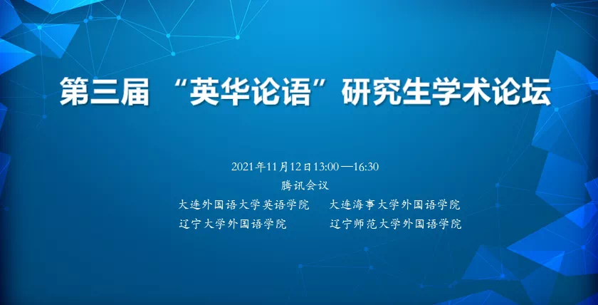为贯彻落实习近平总书记关于研究生教育工作的重要指示精神,着力增强研究生学术创新能力,加强校际学术交流与合作,营造浓厚的学术研究氛围,培养高层次创新型青年人才,为建设社会主义现代化强国提供有力的人才支撑,大连外国语大学英语学院将于2021年11月12日举办第三届“英华论语”研究生学术论坛,为广大青年学者提供学术交流和思想碰撞的平台。