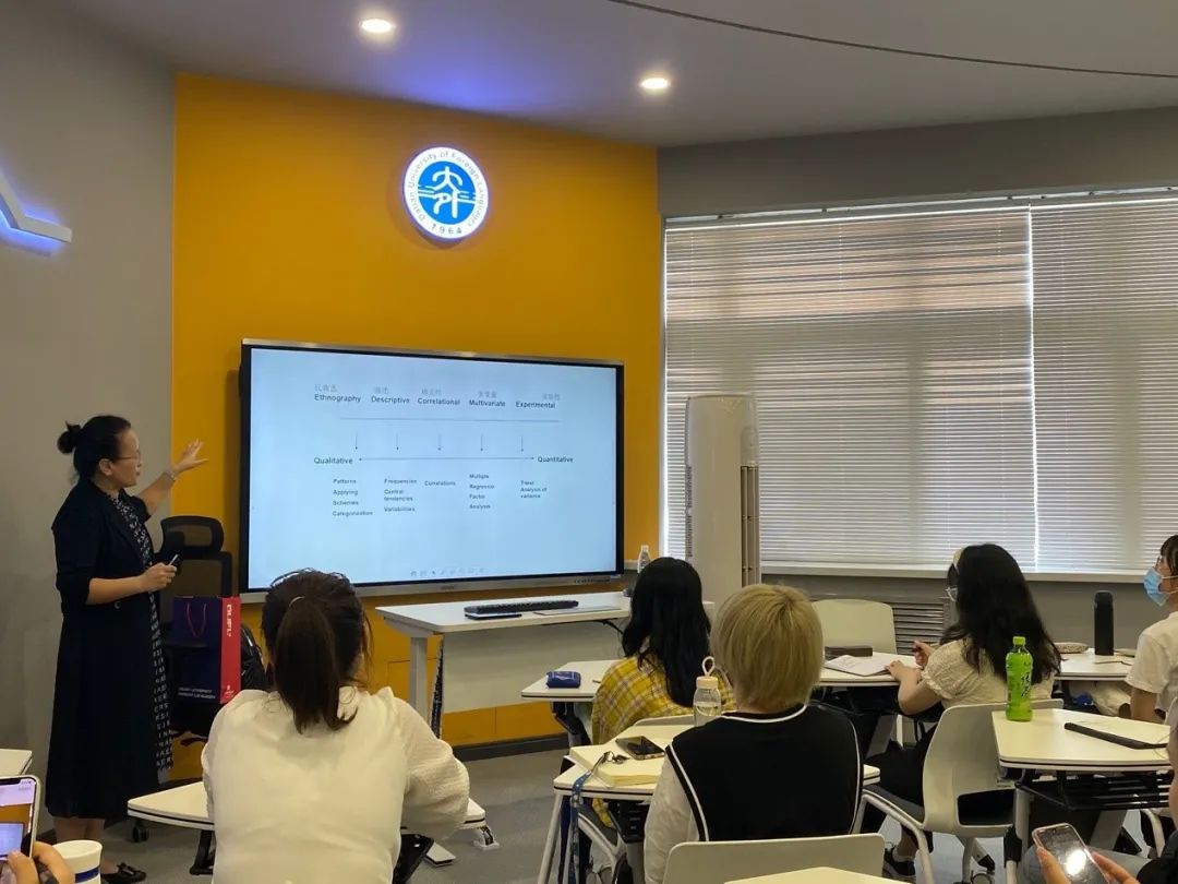 9月18日下午,刘熠院长应邀在英语学院VR英语实训中心为我院研究生作了题为《应用语言学中的质化研究范式》的学术讲座,讲座由副院长刘晓晖主持,我院语言学方向硕士生参加了本次讲座。刘熠教授从研究的定义、范式的定义、质量范式的差异谈起,具体讲述质化研究的选题、数据收集等质化研究的核心问题。刘教授从研究的定义切入,与同学们热烈探讨,深入浅出地引出研究范式的内涵。随后,从应用语言学的质量之争出发,刘教授从研究目的、研究内容、研究设计、研究工具、表达手段、研究关系等方面探讨了量的研究与质的研究的区别。此外,刘教授结合研究选题,重点分析质化研究的应用范围,鼓励同学们依照具体的研究问题和情景选择研究范式,强调了量化与质化两种研究范式互为补充的可行性。